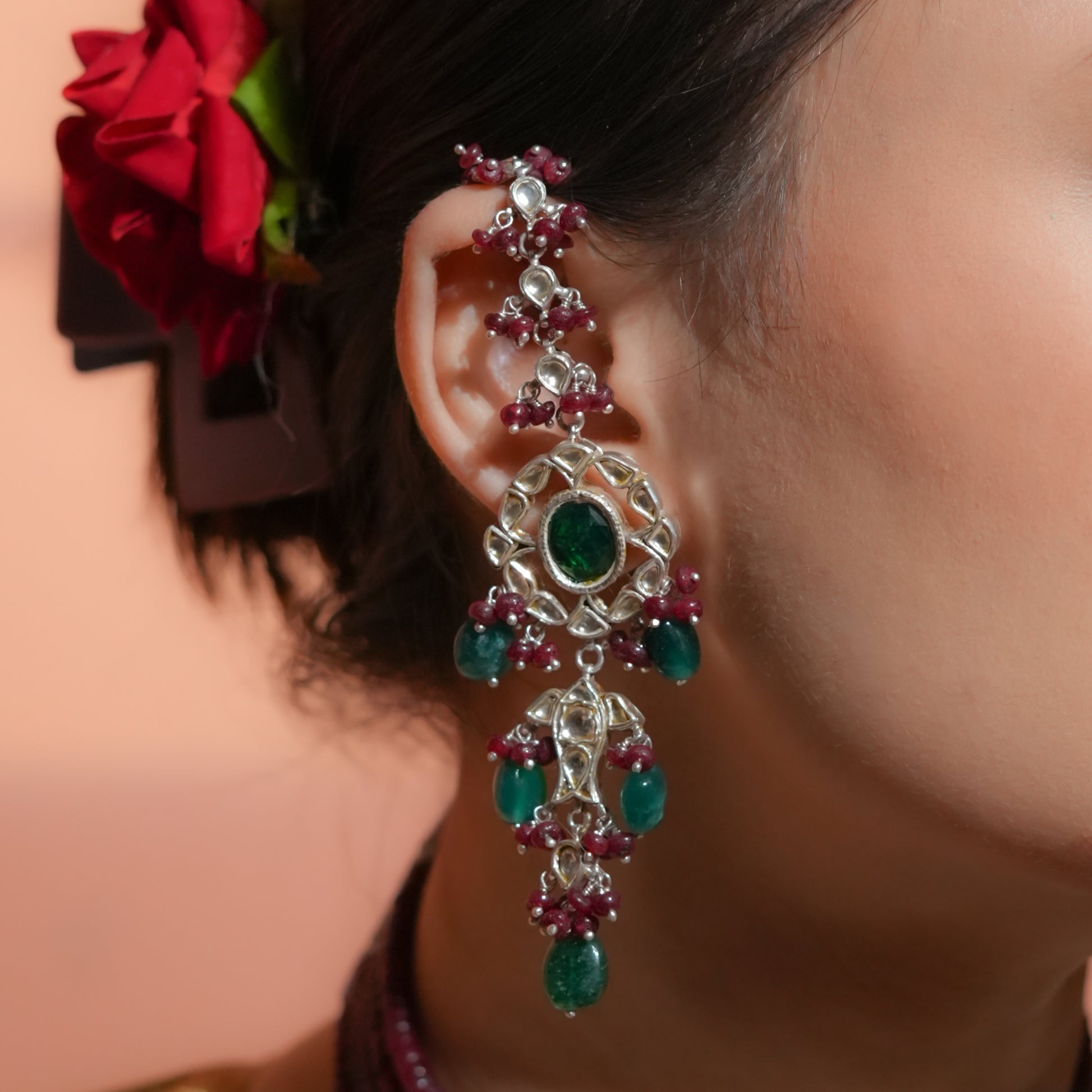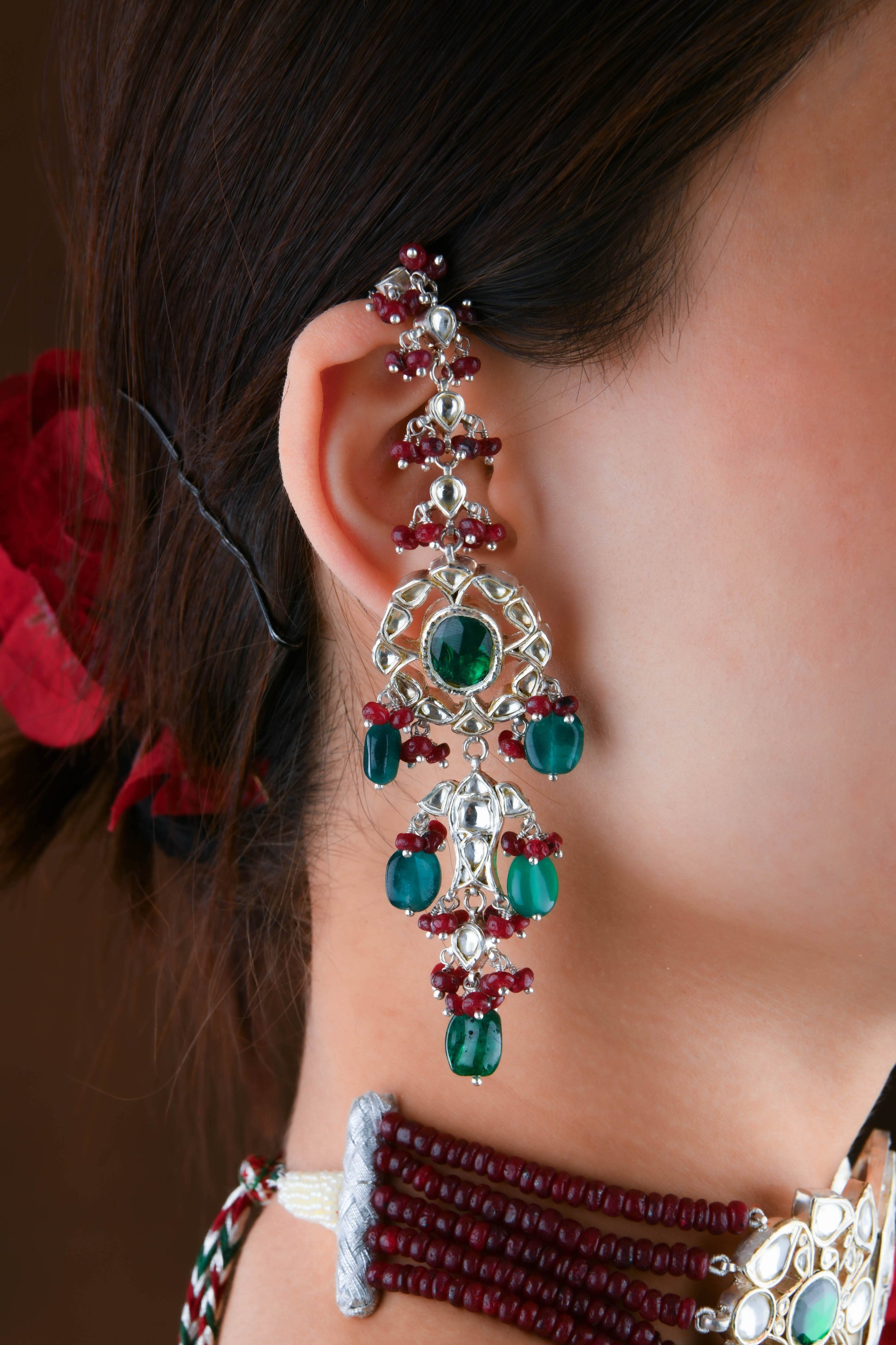 • Authentic Kundan Craftsmanship: Showcasing the meticulous artistry of kundan work, each gemstone is set with precision in silver, creating a breathtaking mosaic of light and color.
