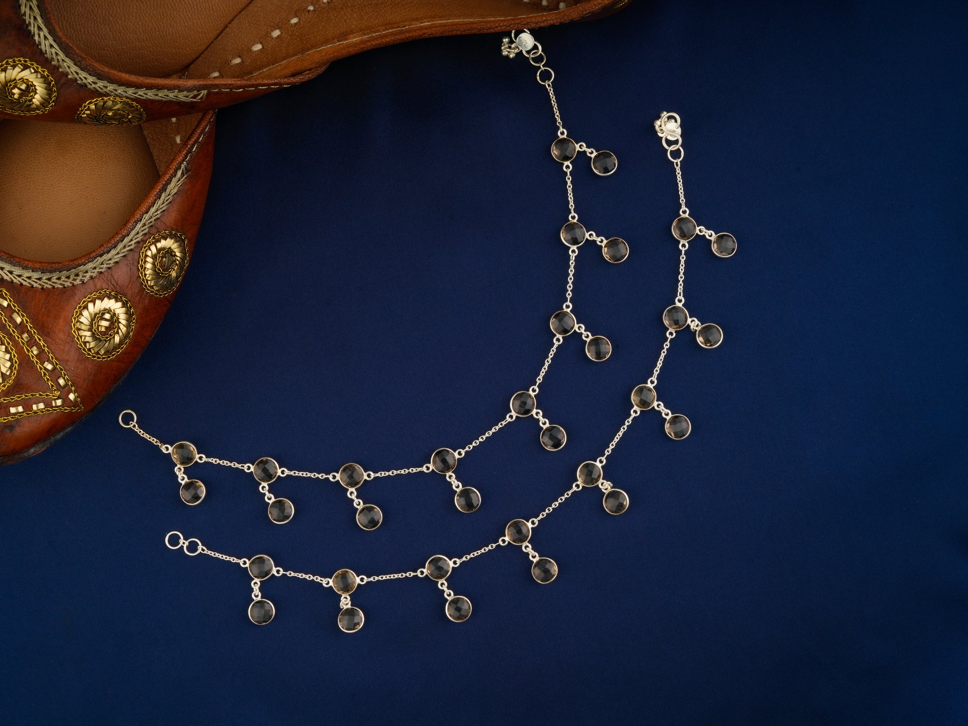 Smoky Quartz Round Drops Anklets