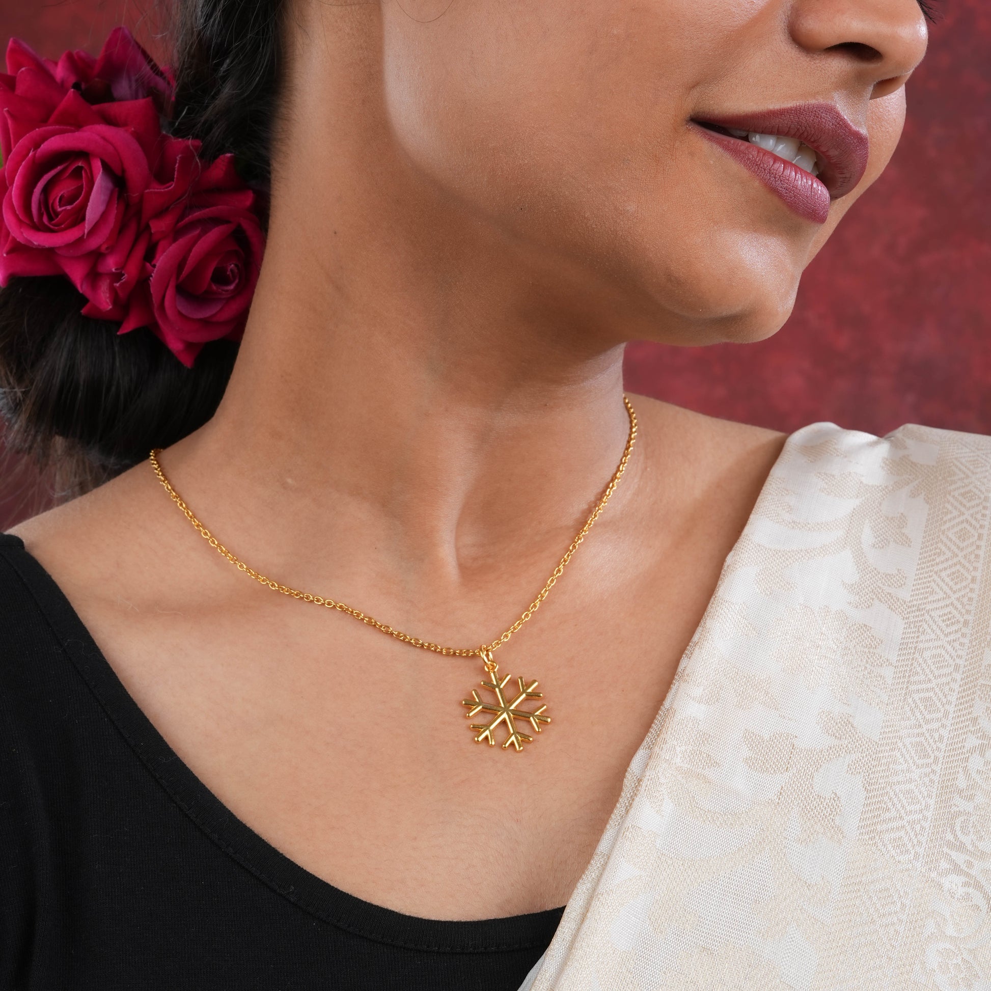 Wrap yourself in wintertime luxury with this elegant snowflake necklace! The dainty pendant emulates the delicate beauty of a snowflake, while the delicate chain adds an extra touch of sophistication. You'll love the way this classic piece of jewelry brings a touch of wintery sparkle to any outfit.