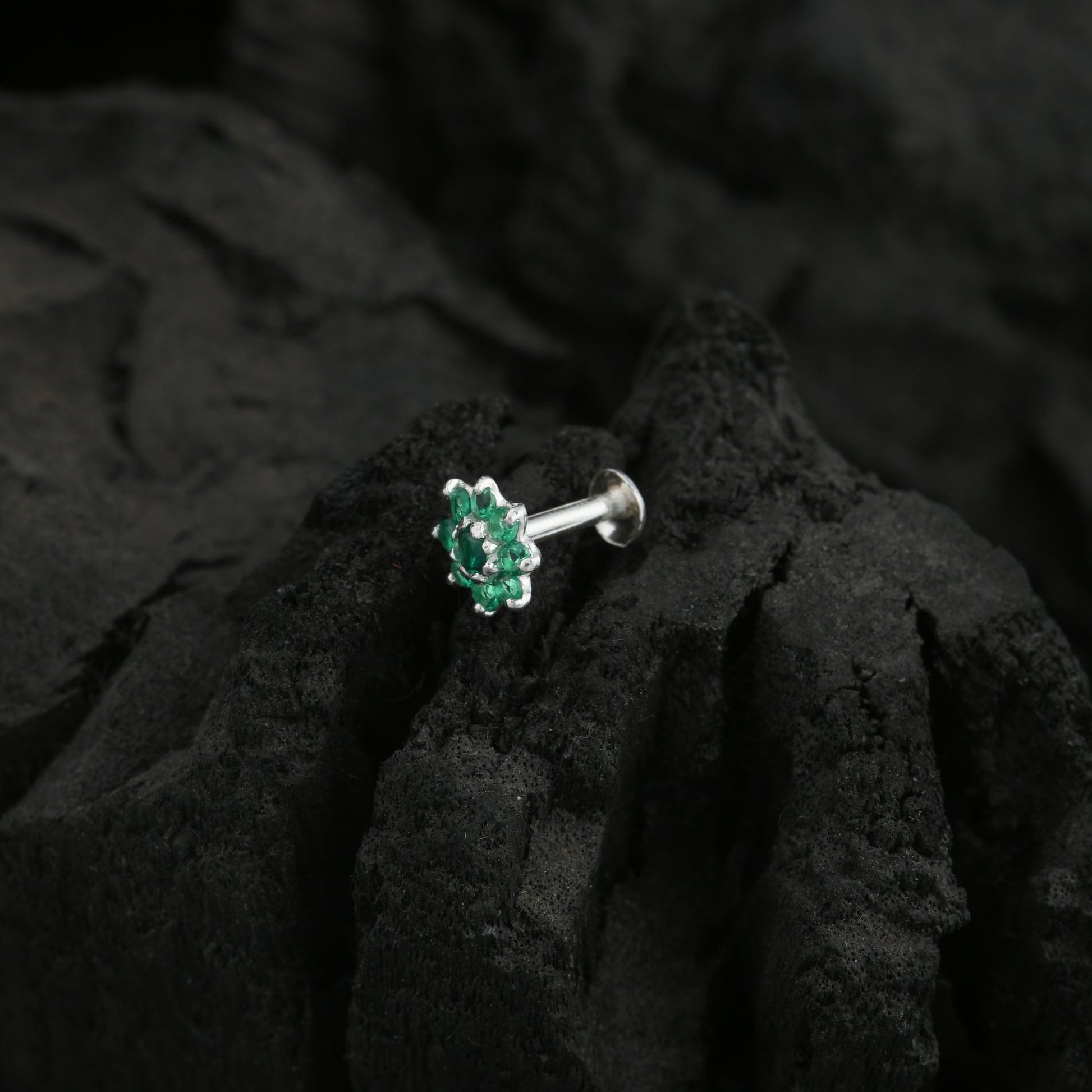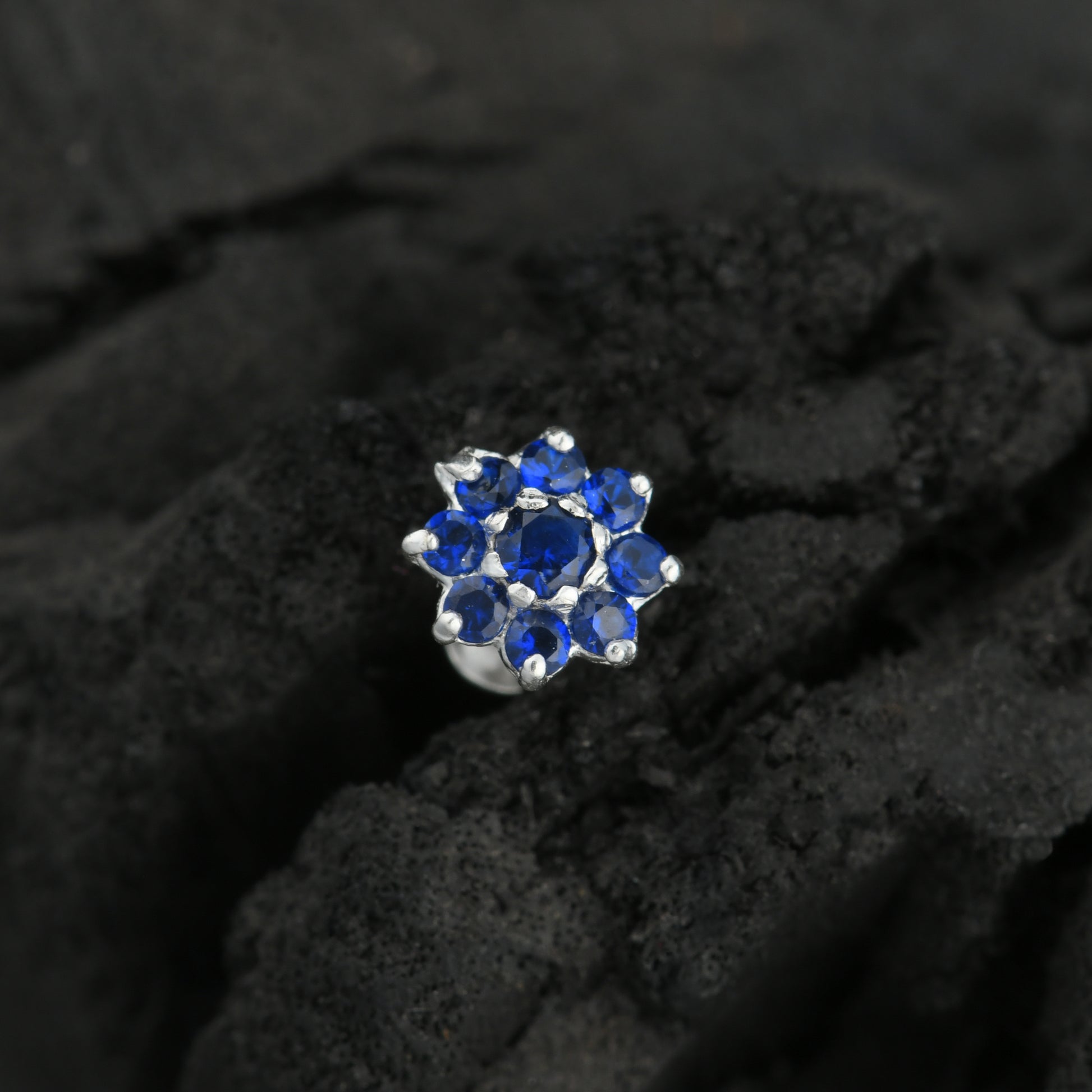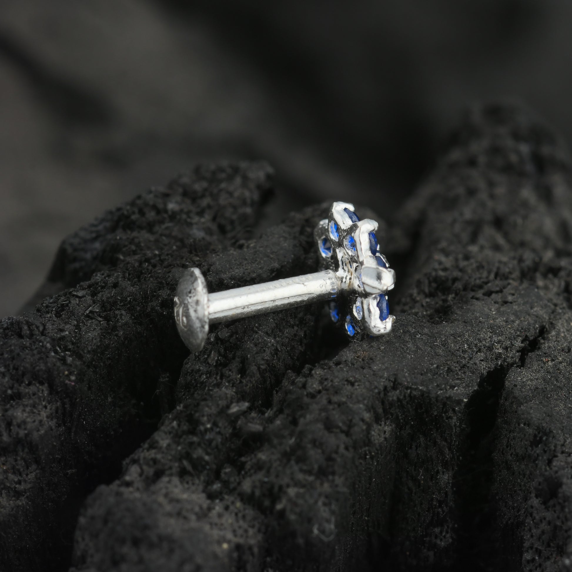 Material  92.5 Silver. Blue, White, Red, Green, Black, CZ,  Screw Type. Needs Piercing