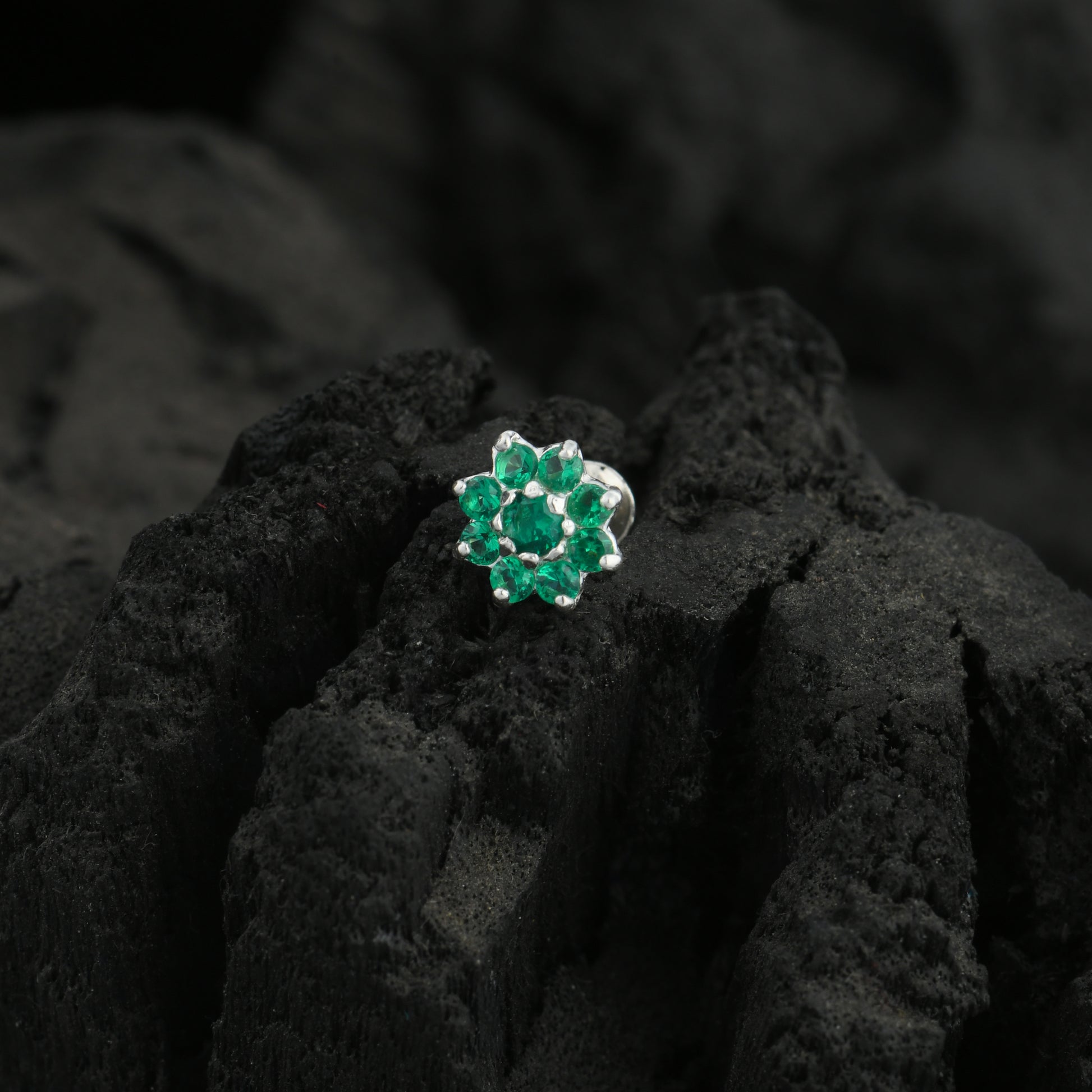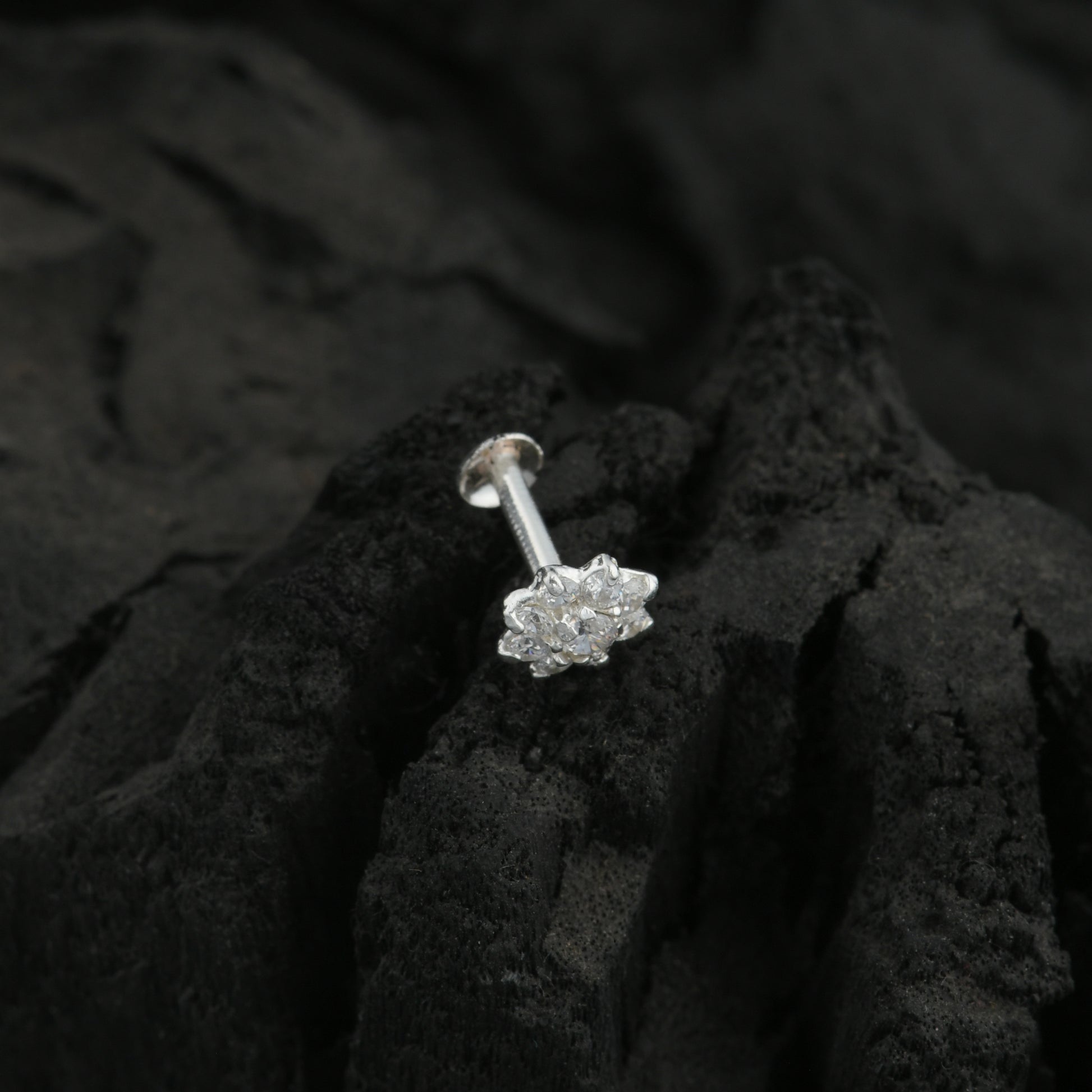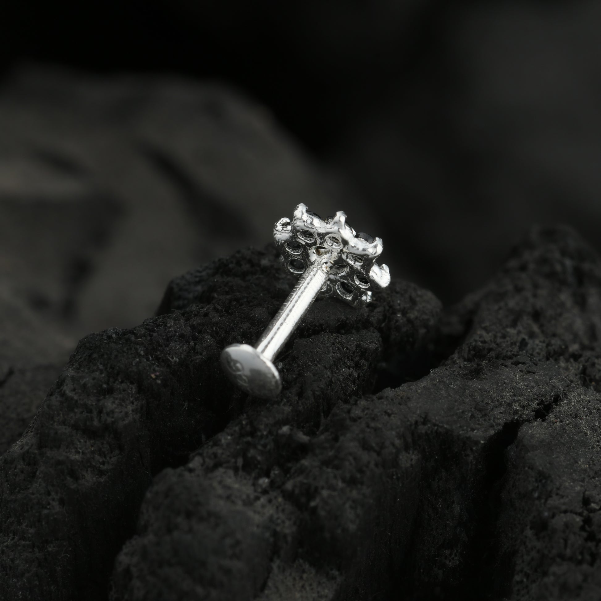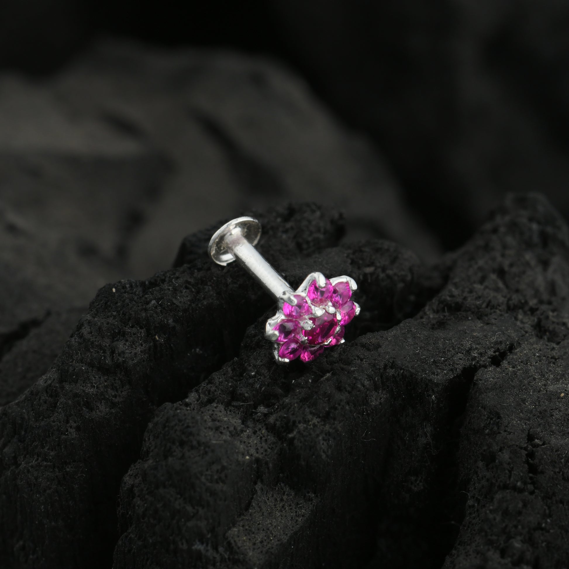 Material  92.5 Silver. Blue, White, Red, Green, Black, CZ,  Screw Type. Needs Piercing