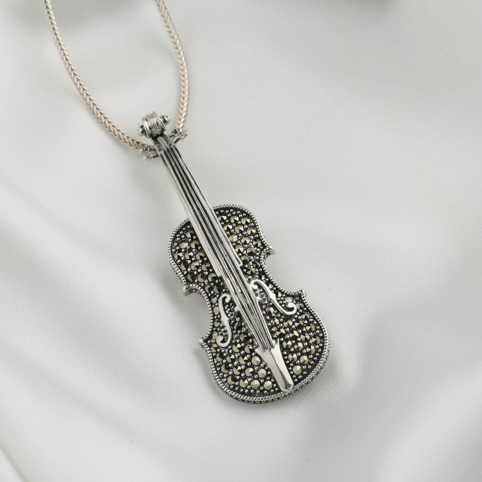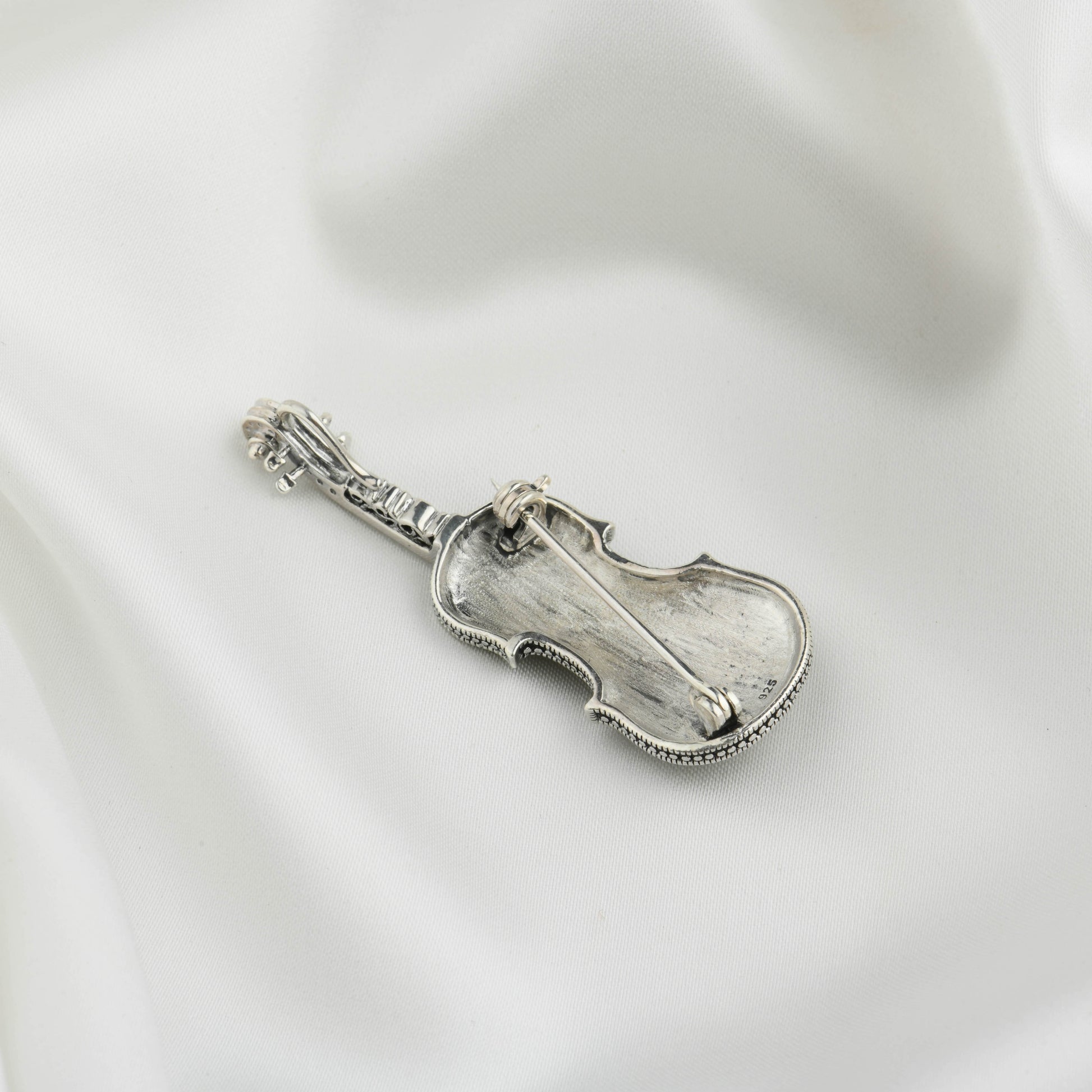 Strike a Chord with Elegance: Marcasite Violin Silver Brooch Cum Pendant.