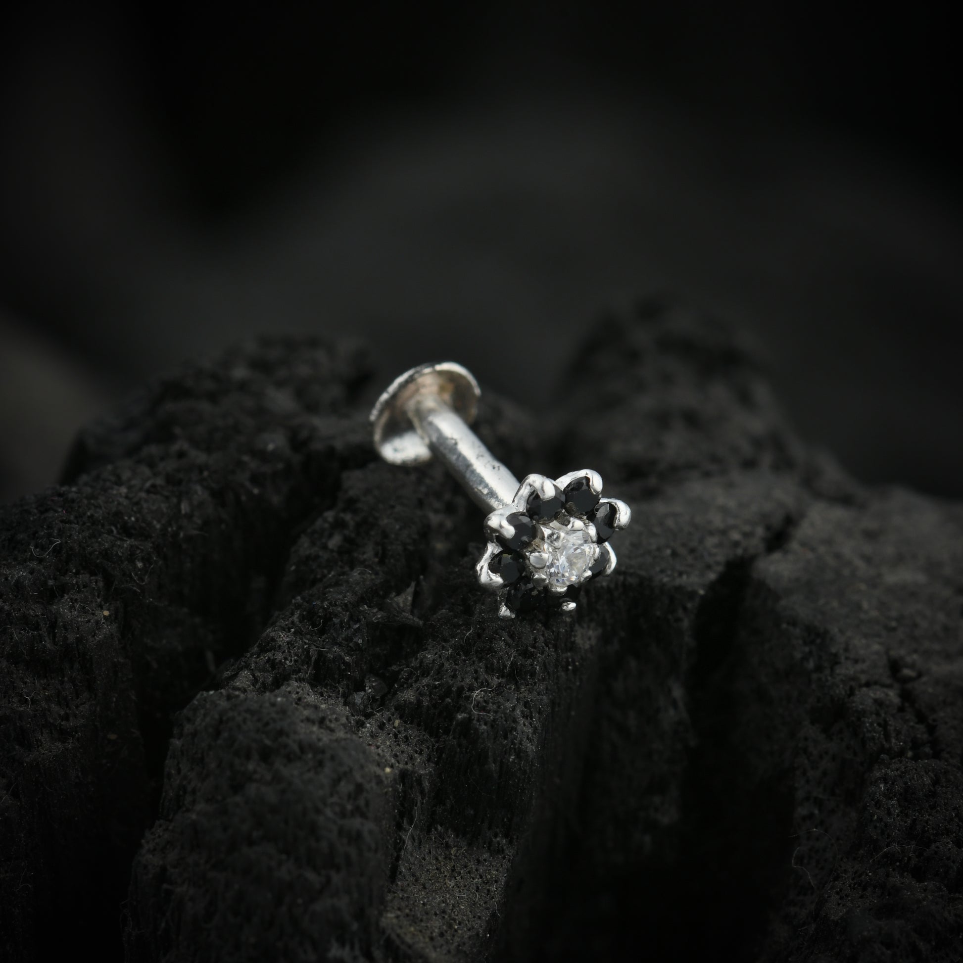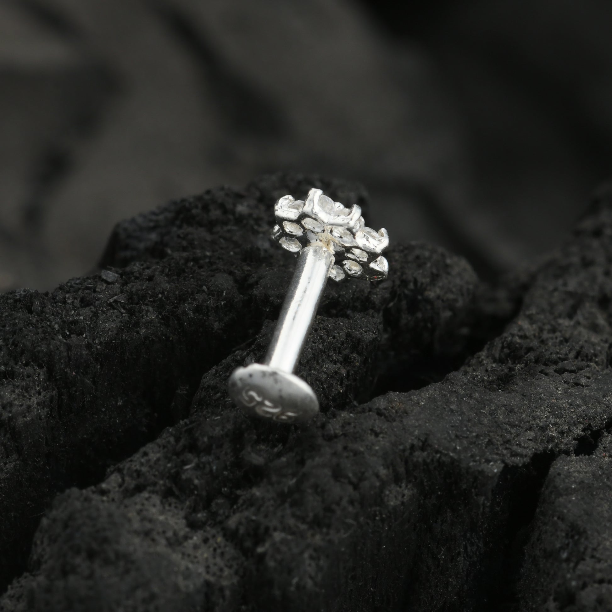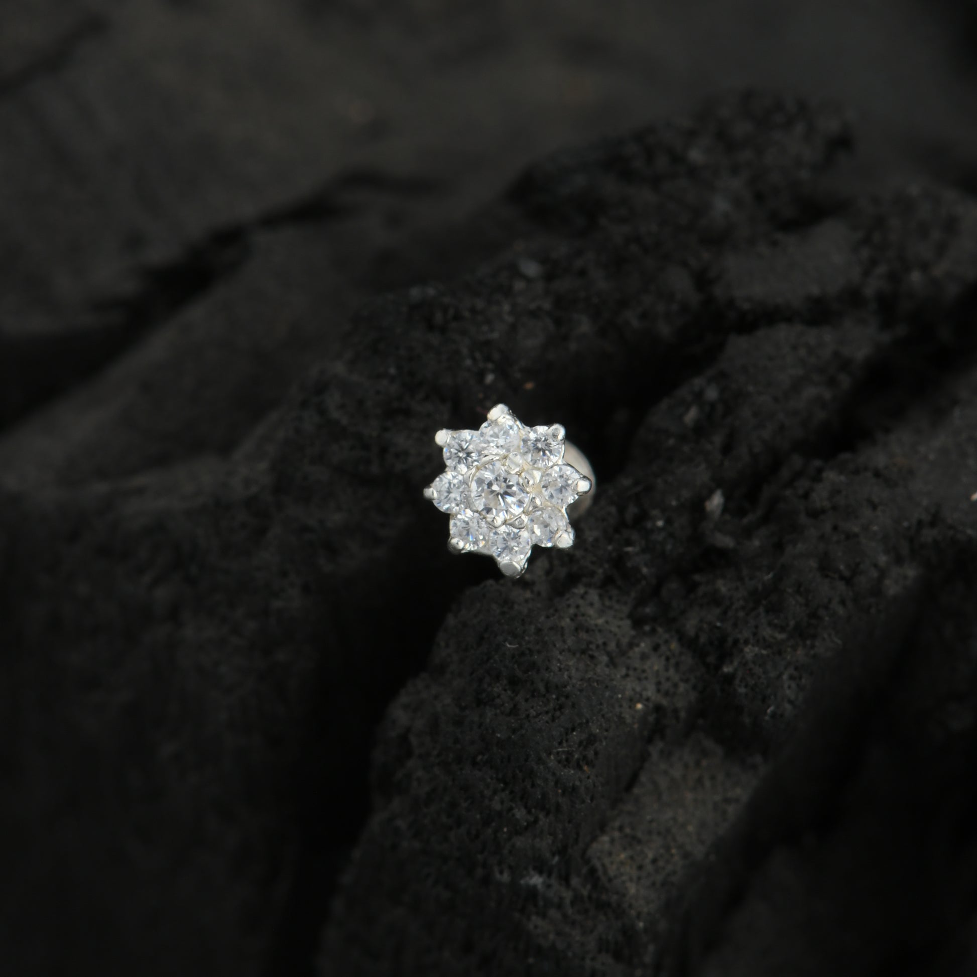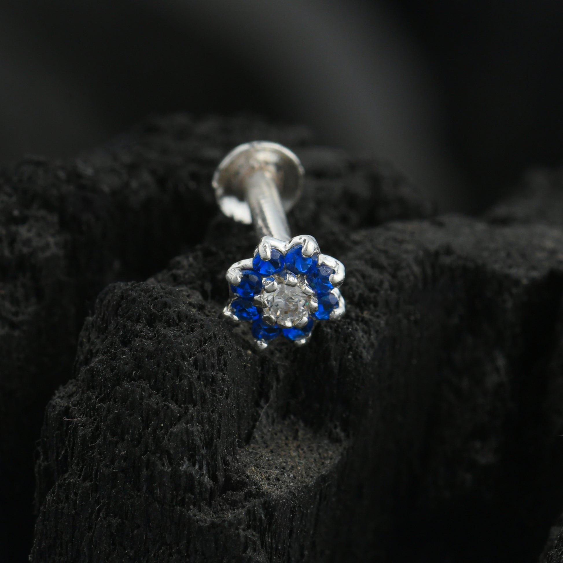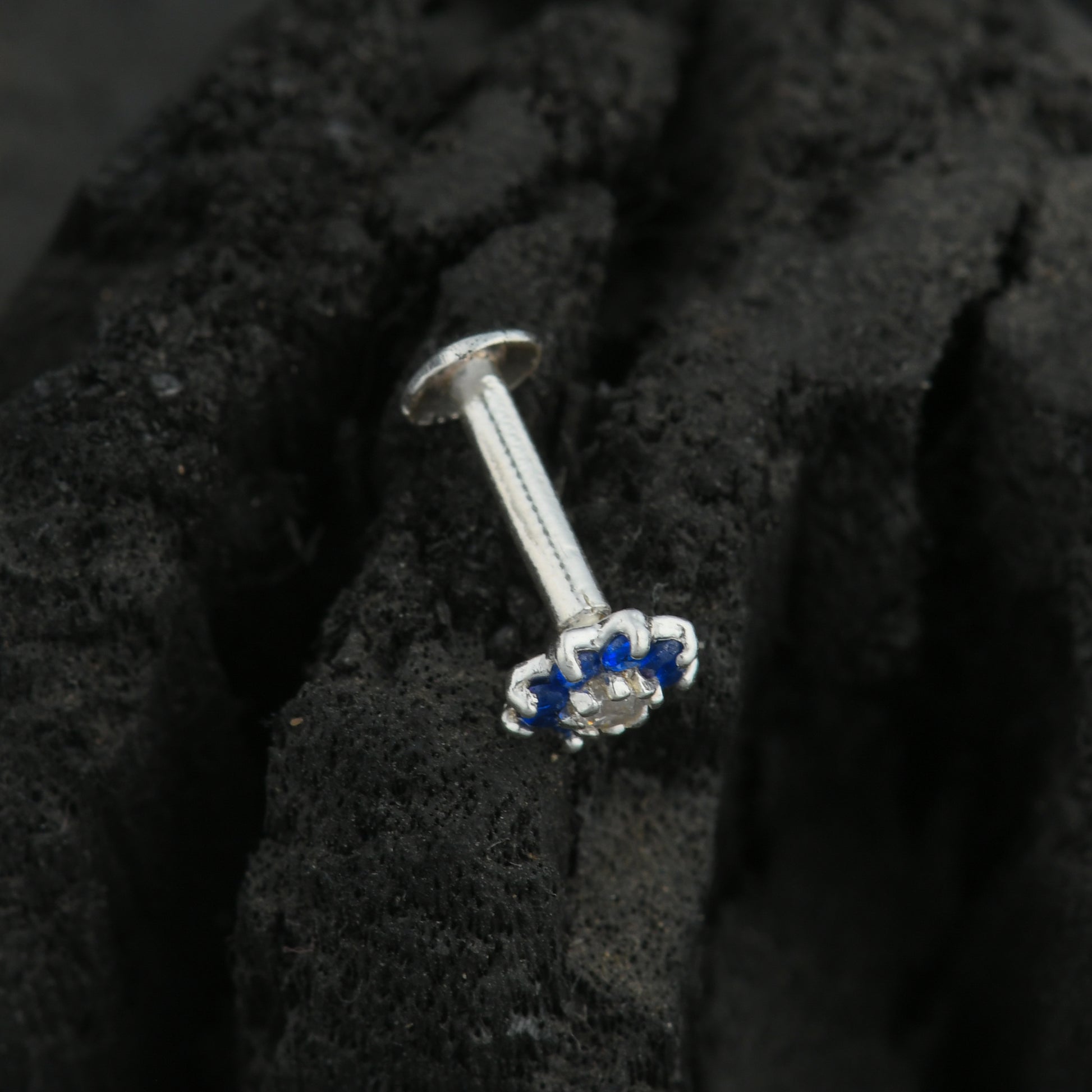 Material  92.5 Silver. Blue And White CZ. Screw Type. Needs Piercing