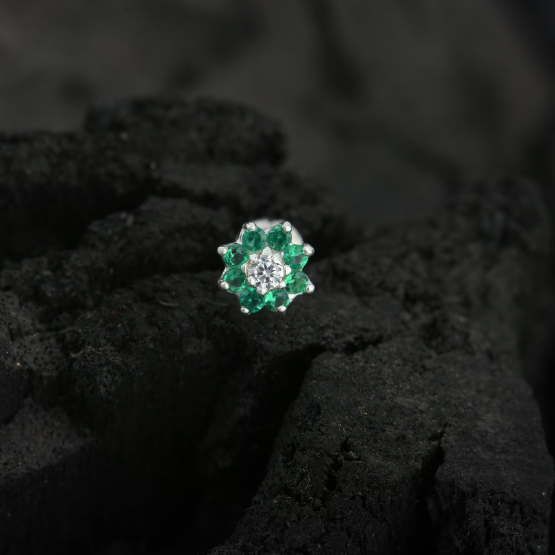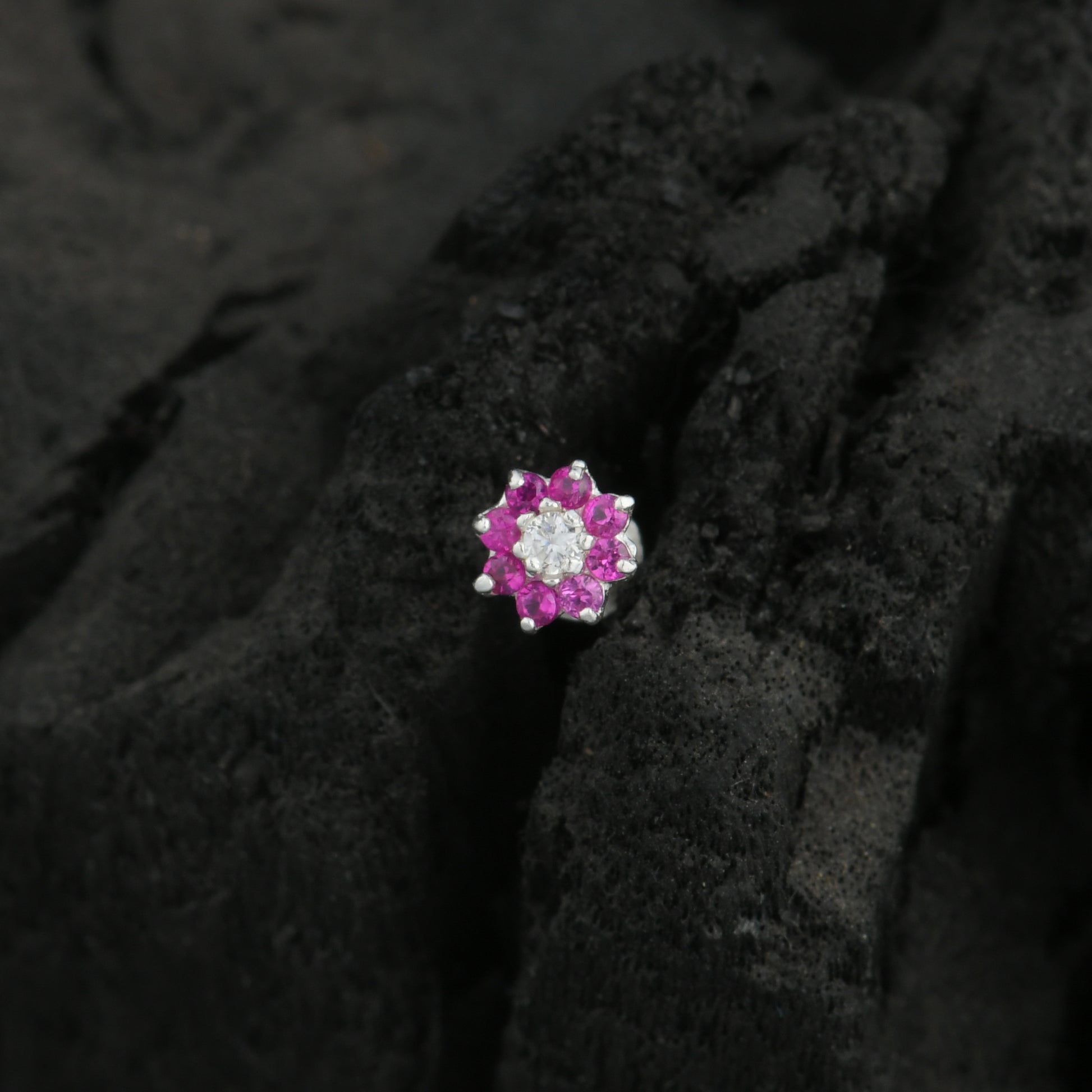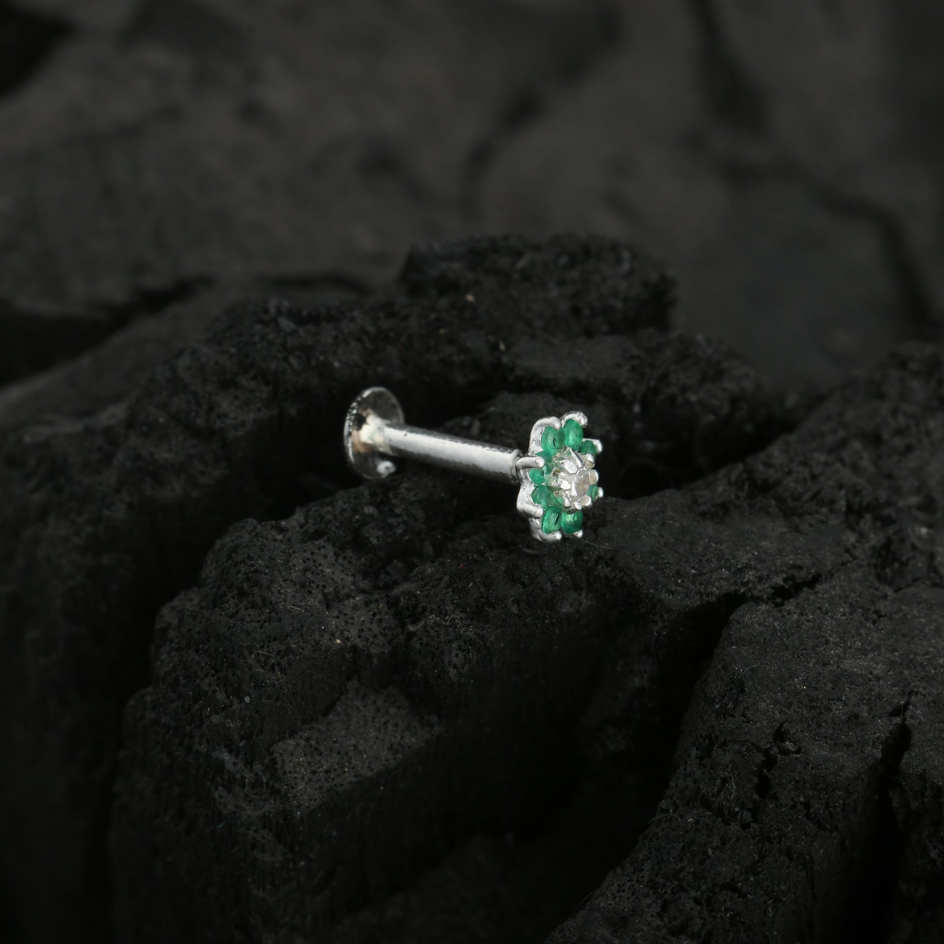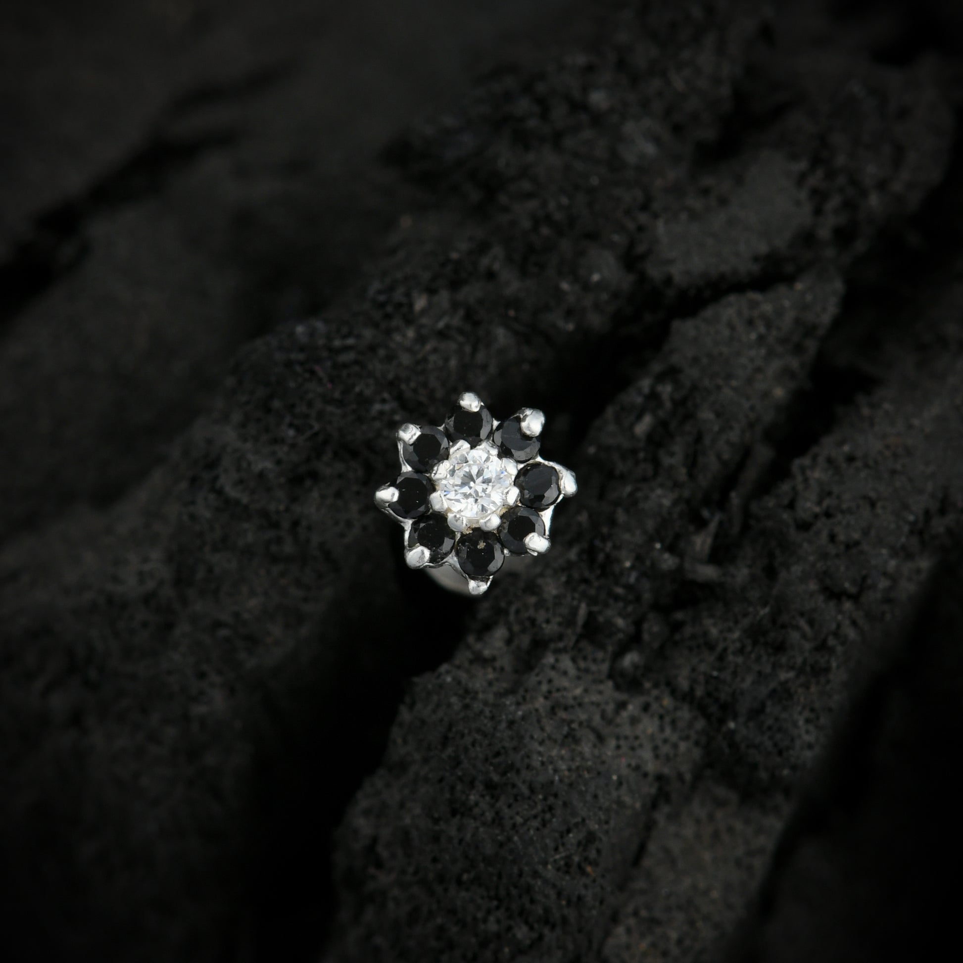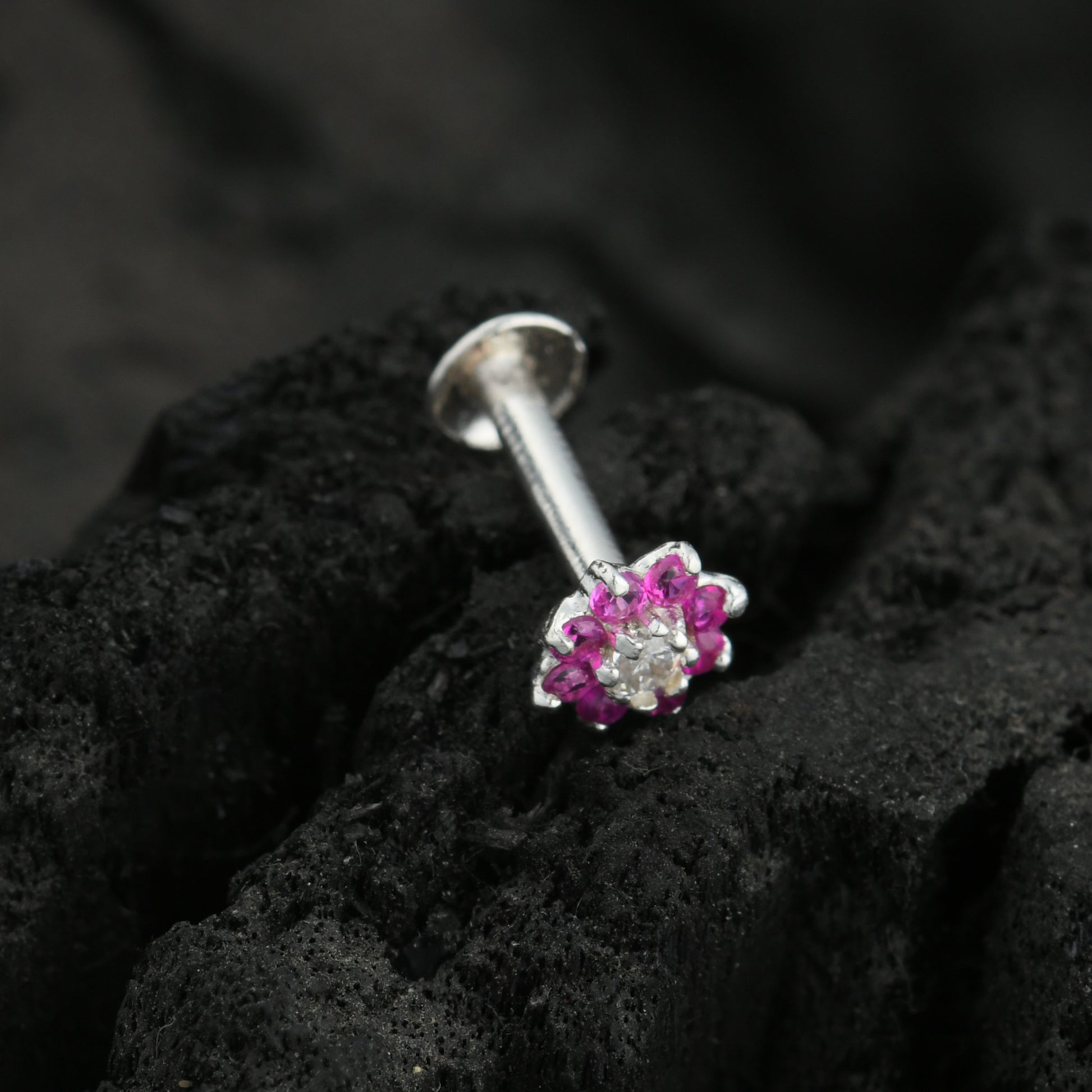 Material  92.5 Silver. Blue And White CZ. Screw Type. Needs Piercing