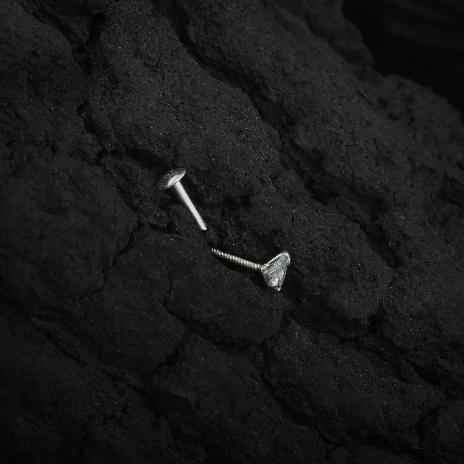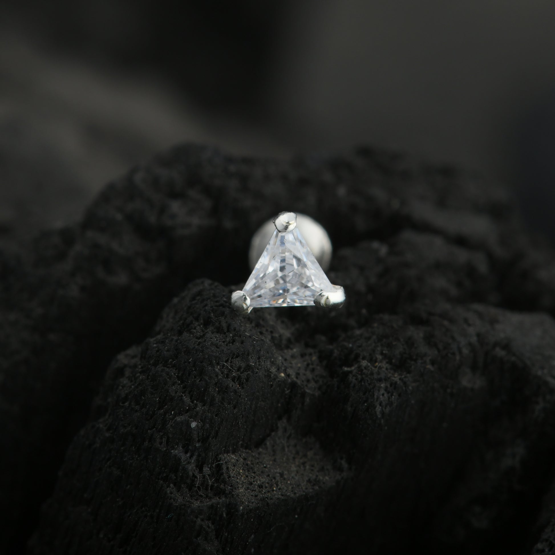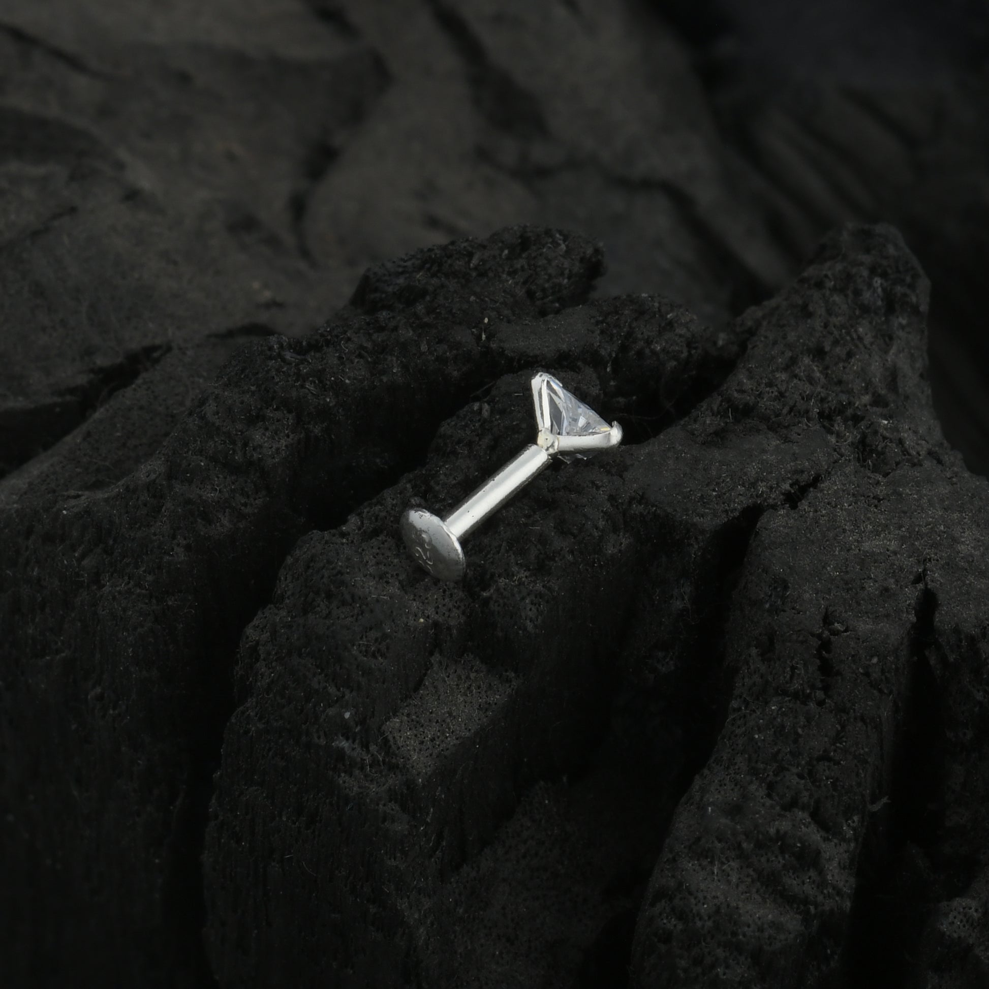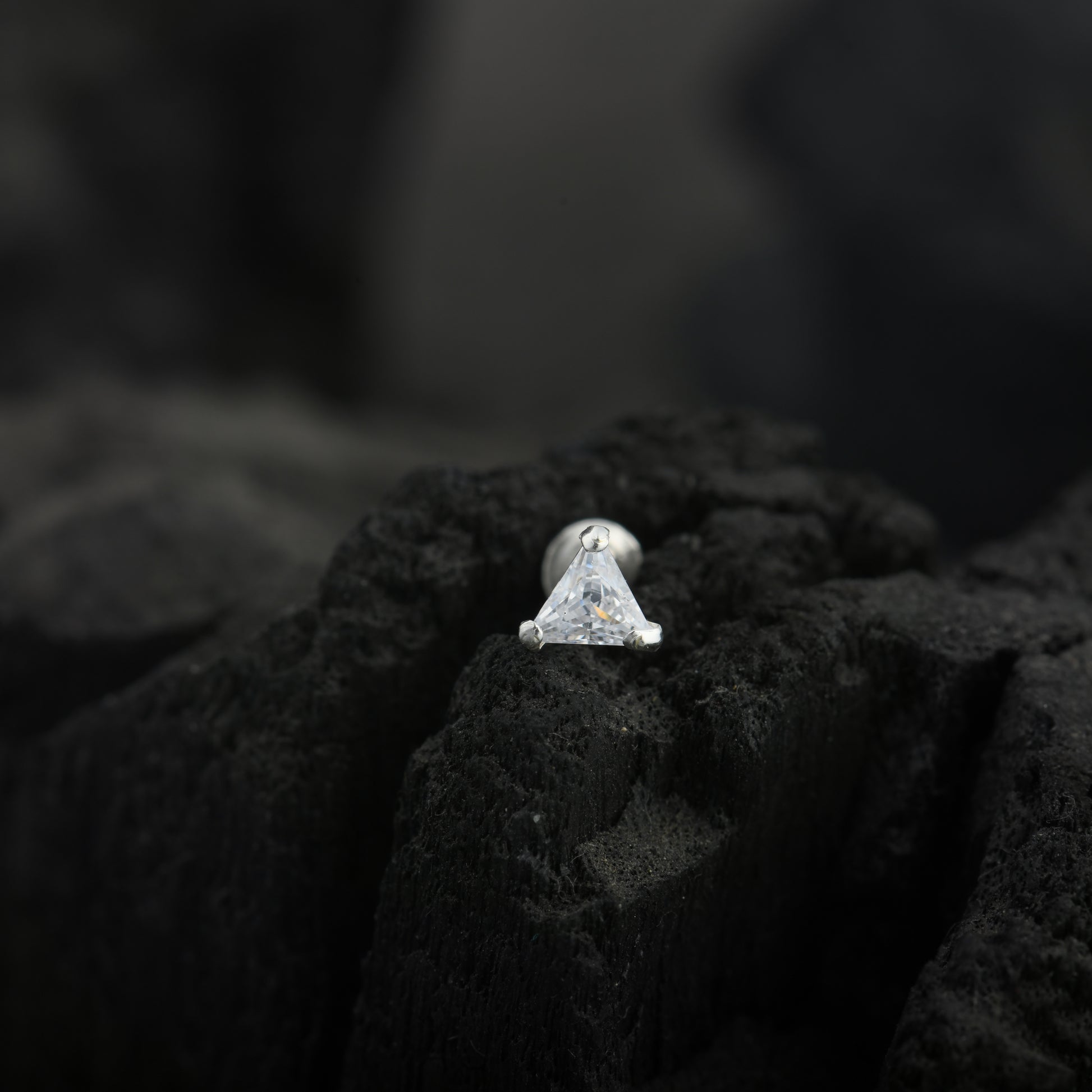 Triangle Silver CZ Screw Back Silver Nose Pin