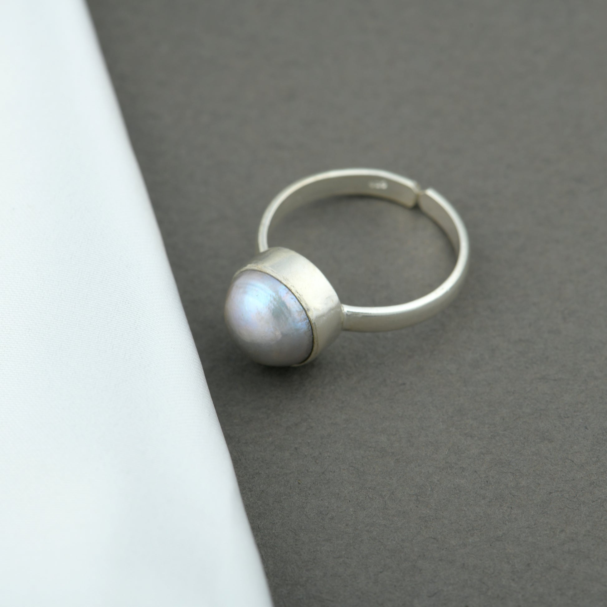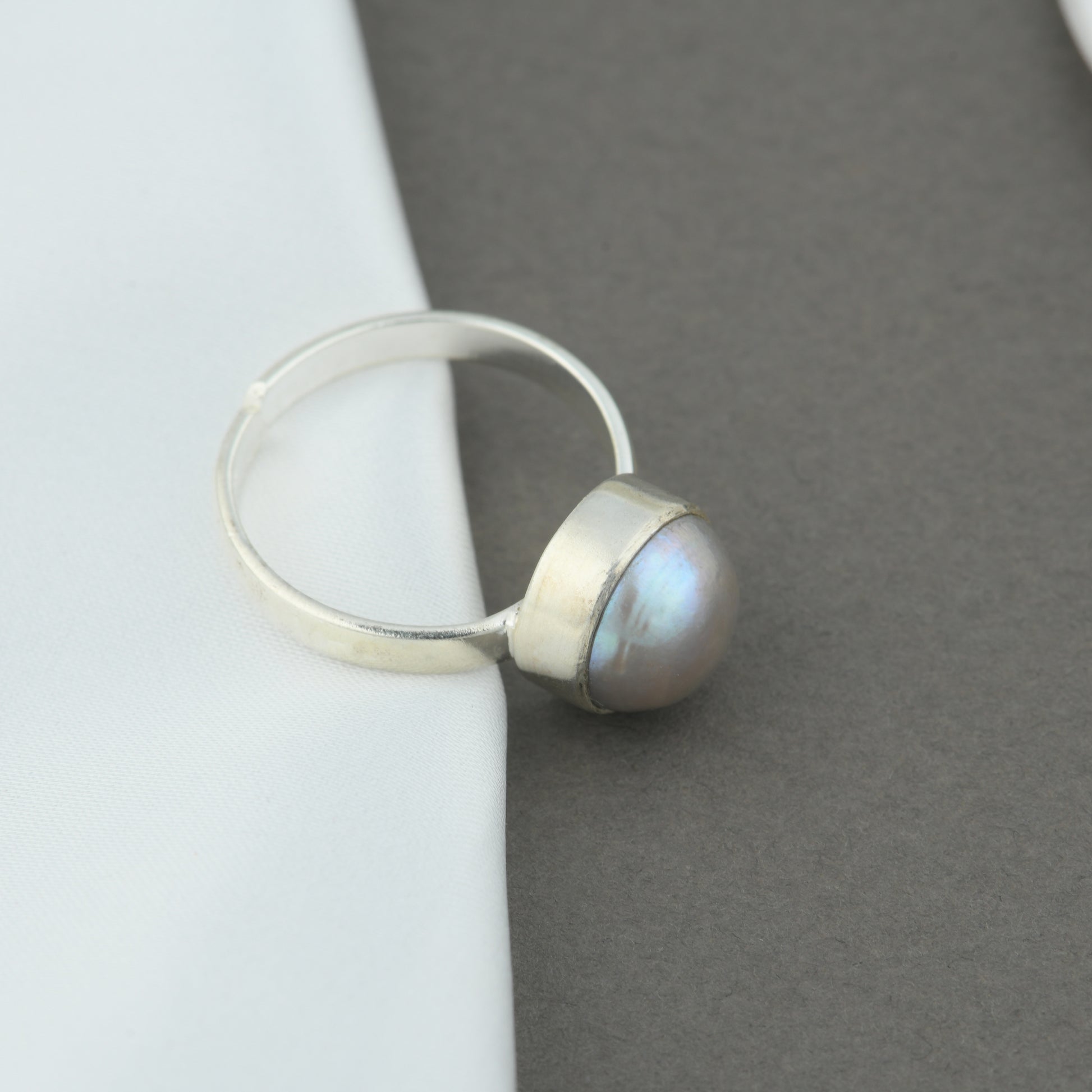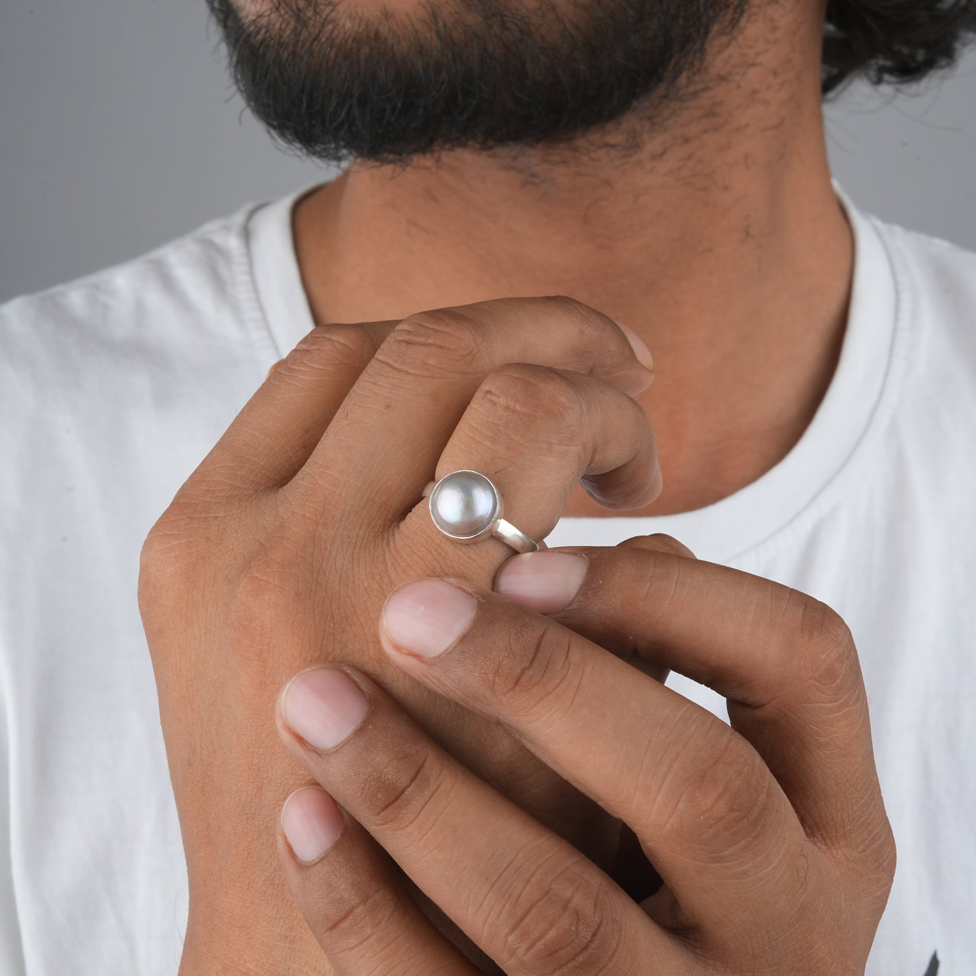 Adjustable Fresh water Grey pearl ring, can be worn by women and men alike. Being in silver and real pearl it is waterproof.