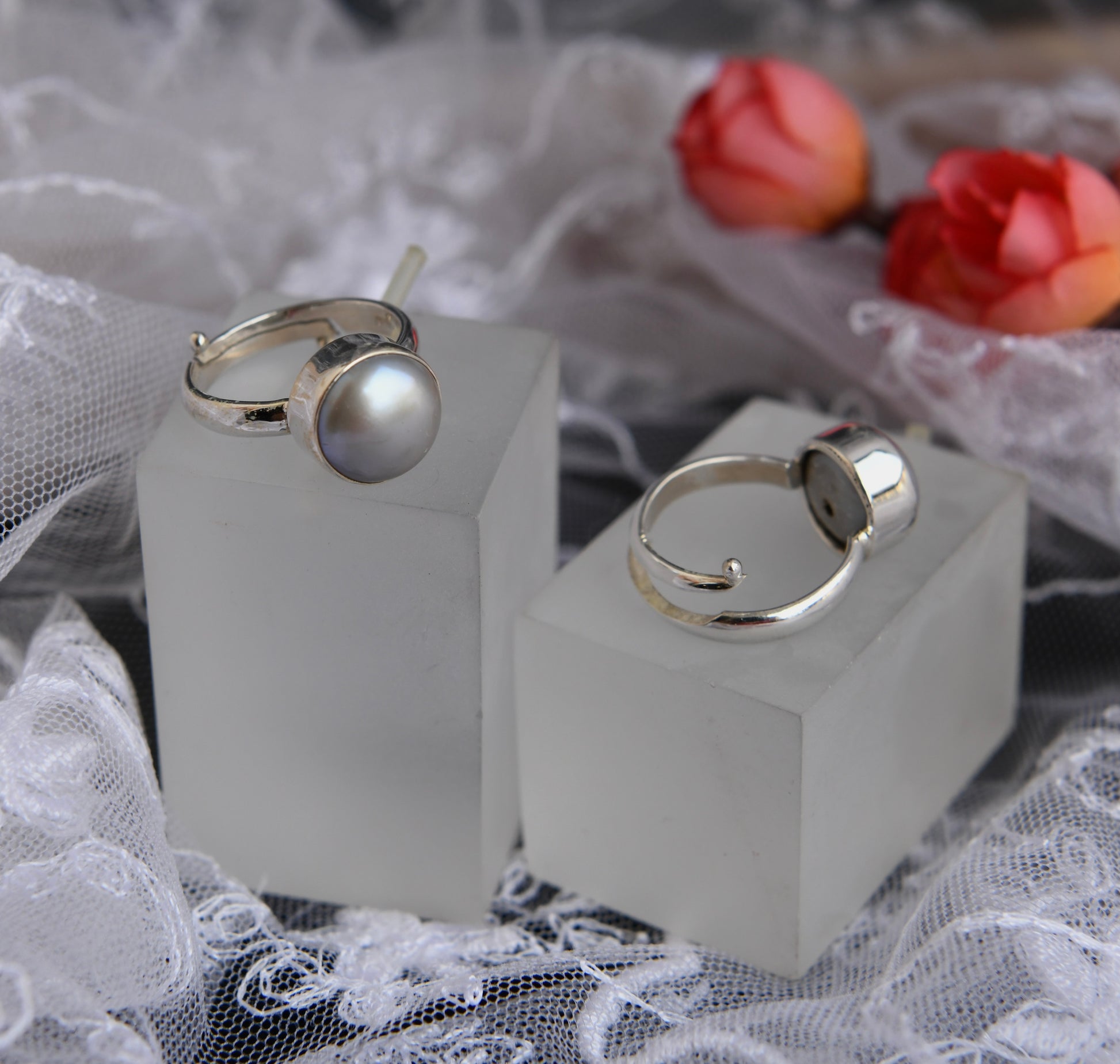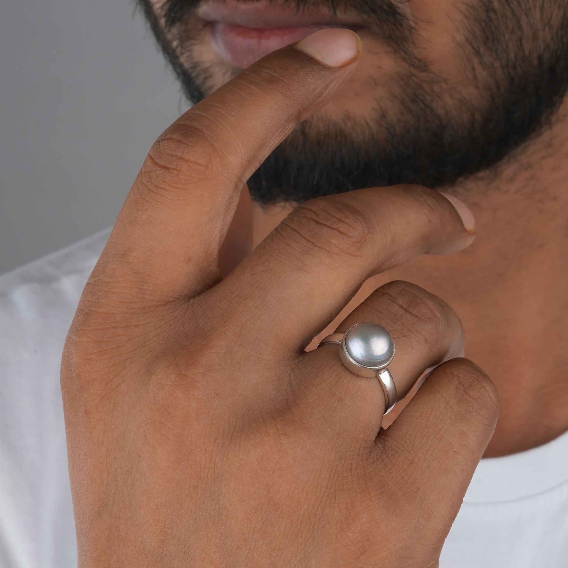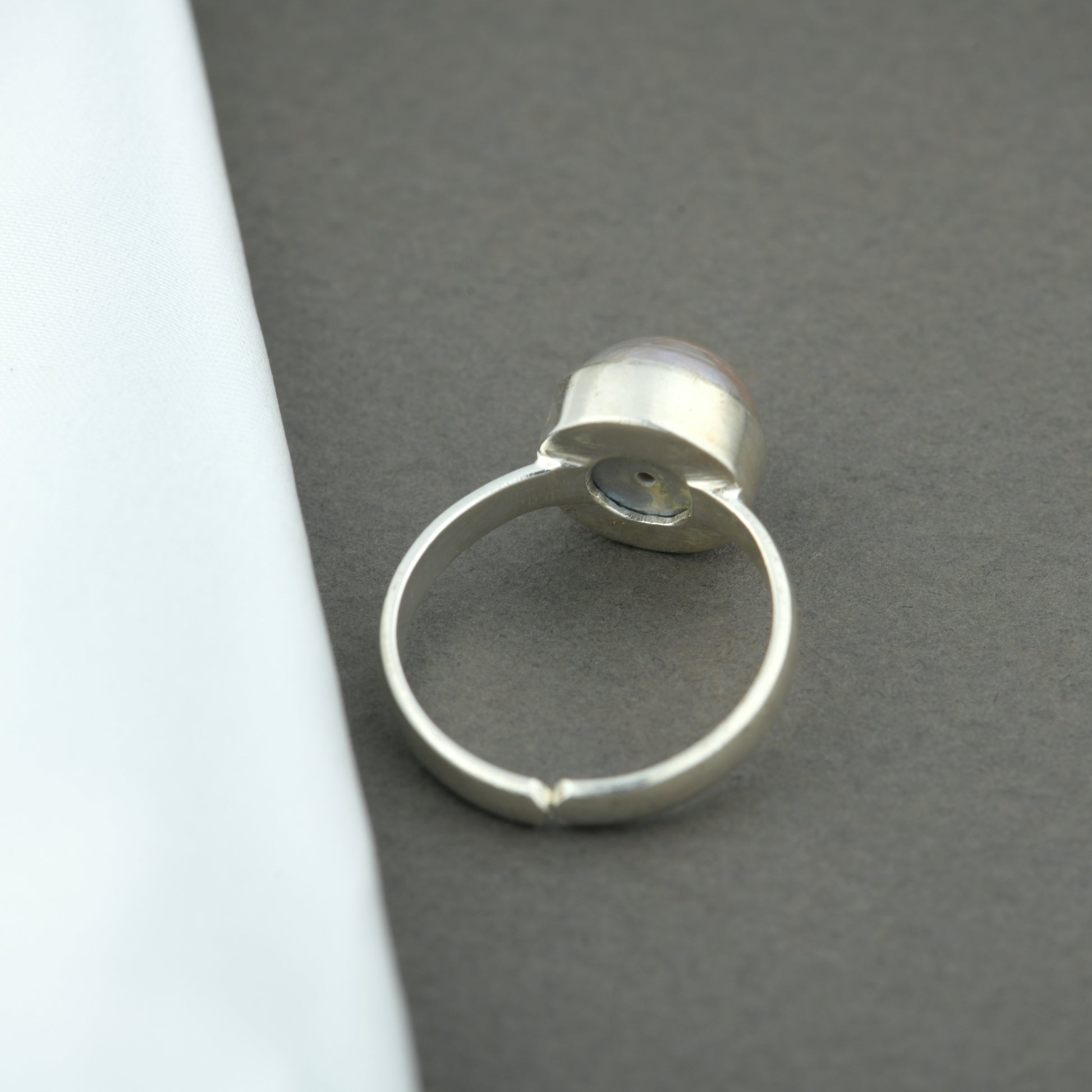 Adjustable Fresh water Grey pearl ring, can be worn by women and men alike. Being in silver and real pearl it is waterproof.