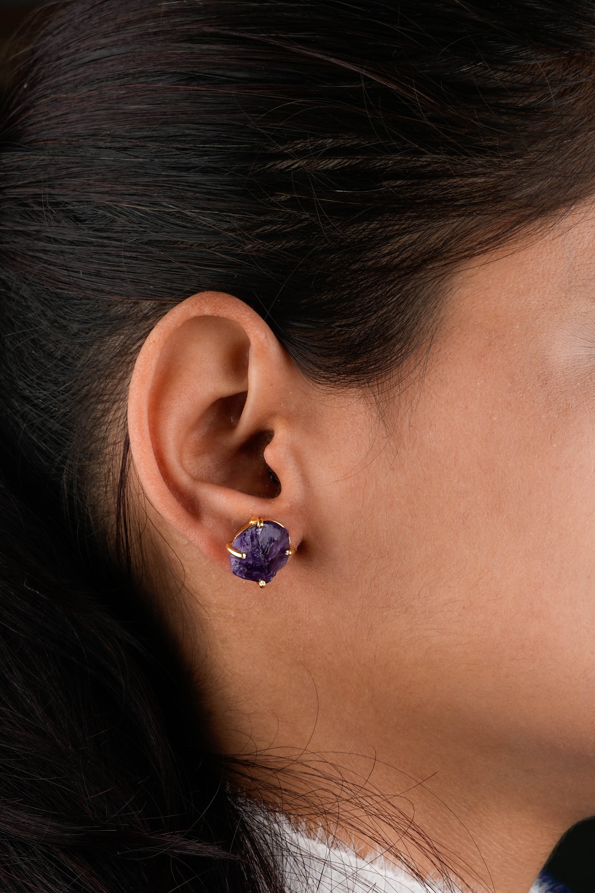Natural Uncut Amethyst Studded In Gold Plated brass