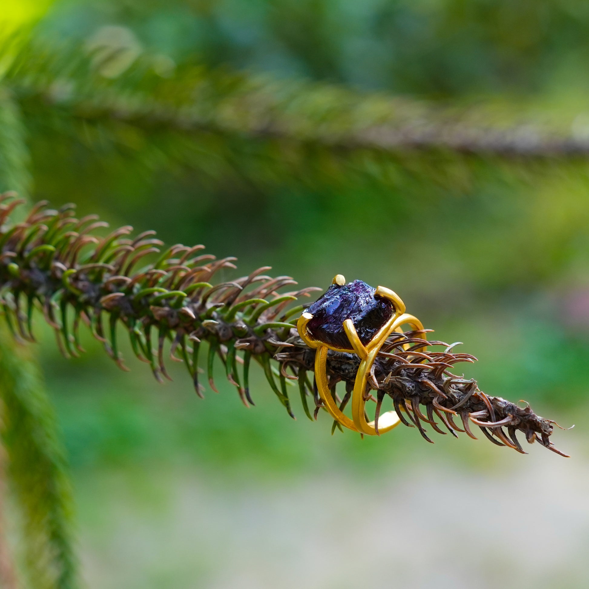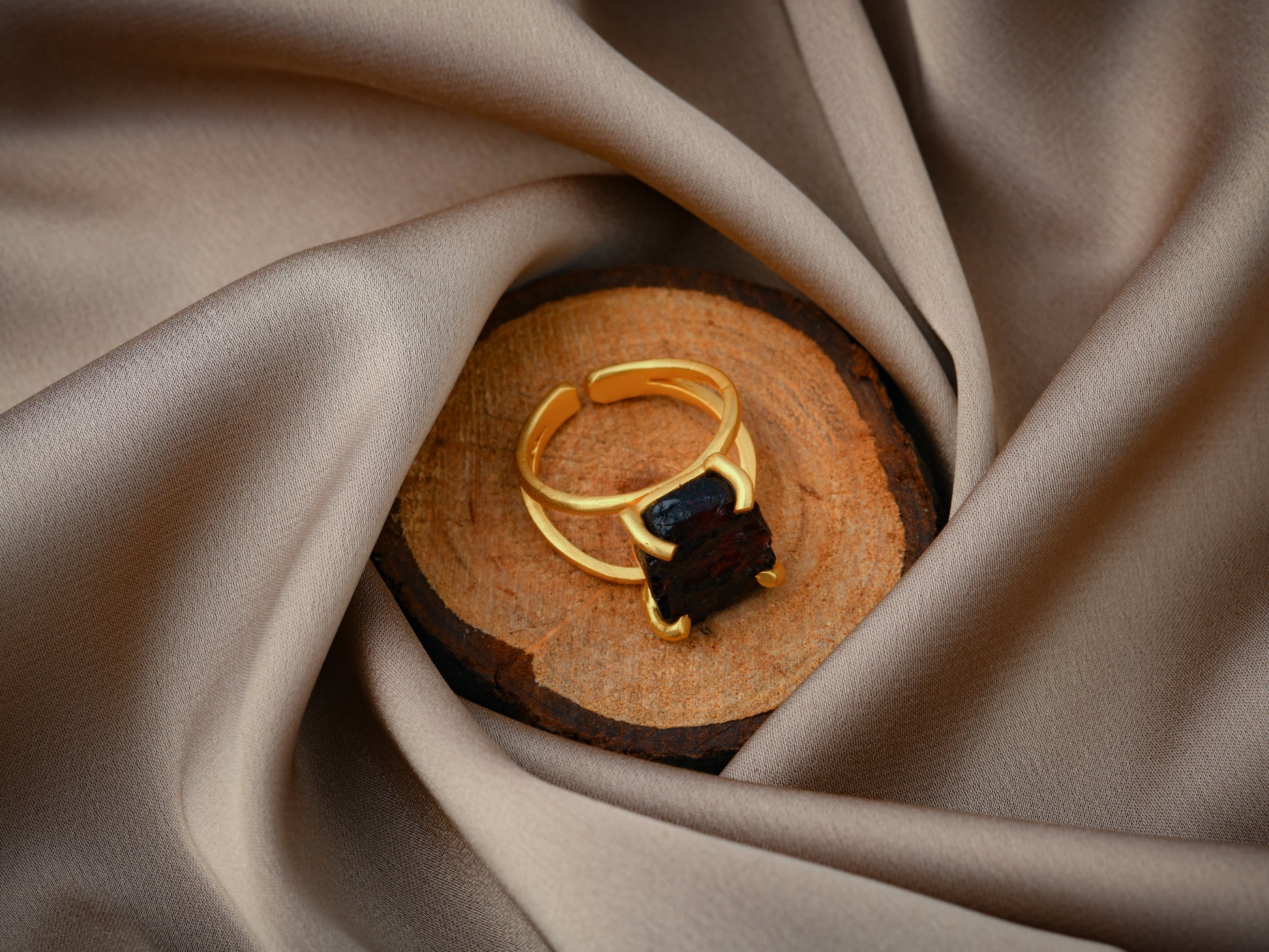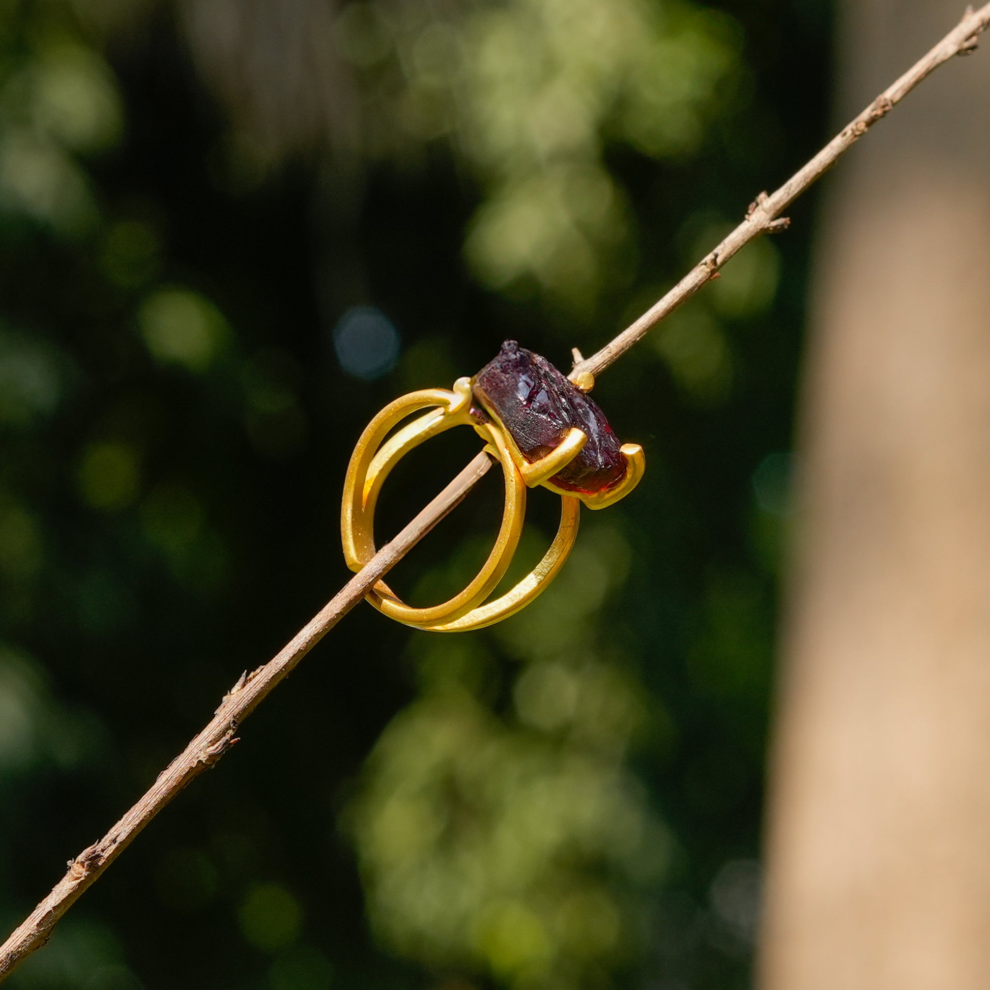 Natural Uncut Garnet Gemstone  studded in gold plated Brass