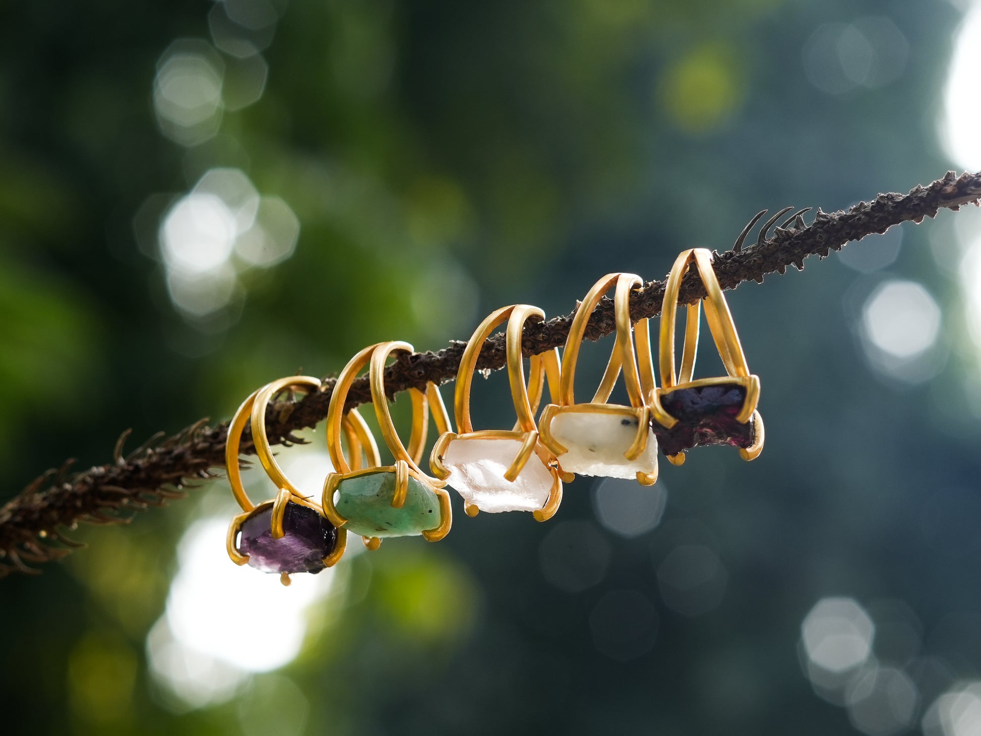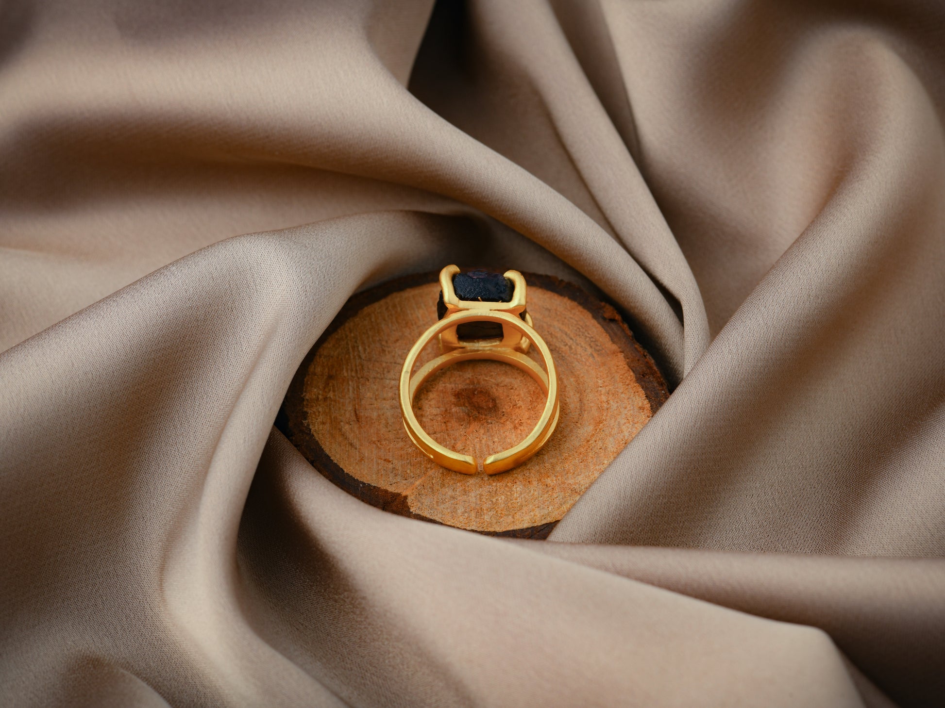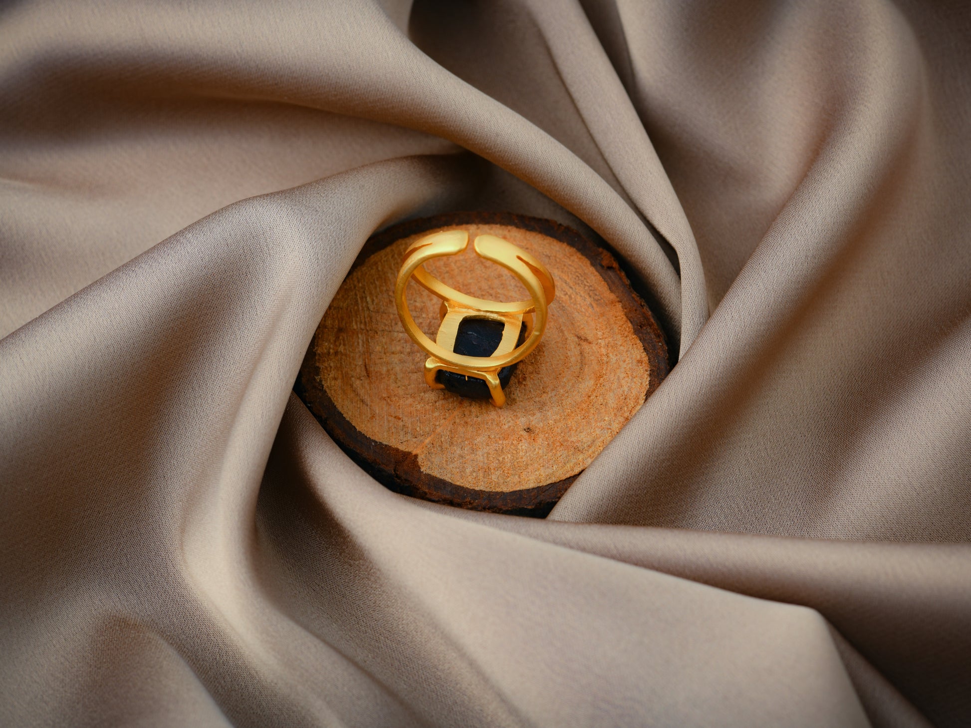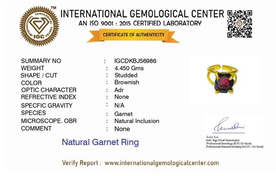 Natural Uncut Garnet Gemstone  studded in gold plated Brass