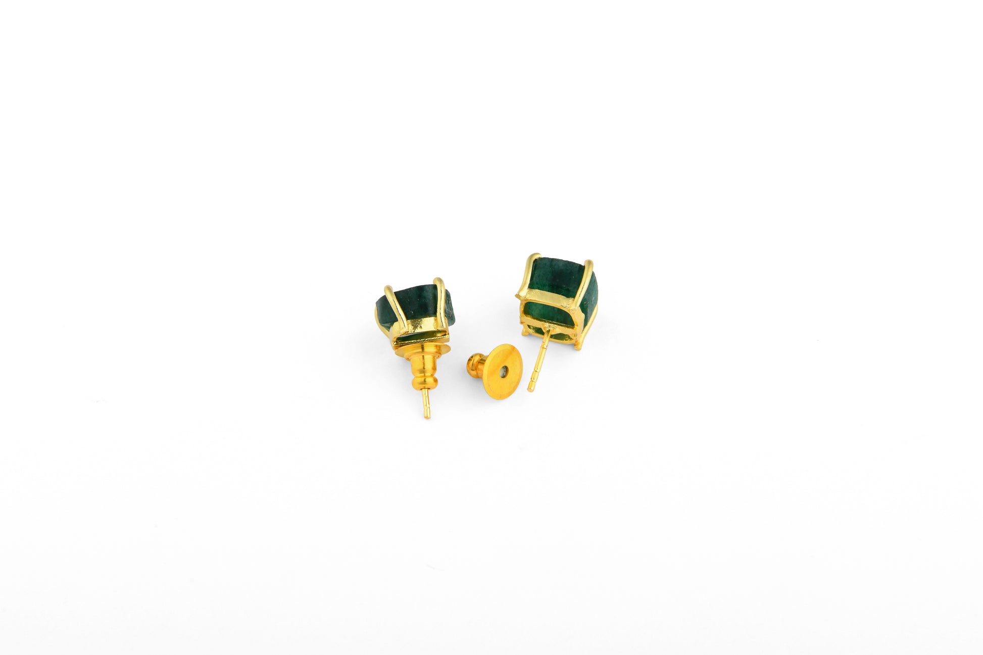 Natural Uncut Green Onyx Studded In Gold Plated brass