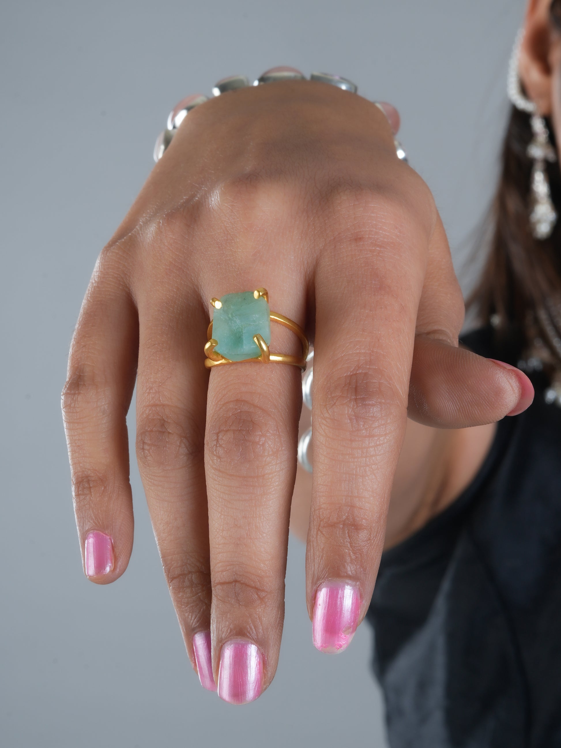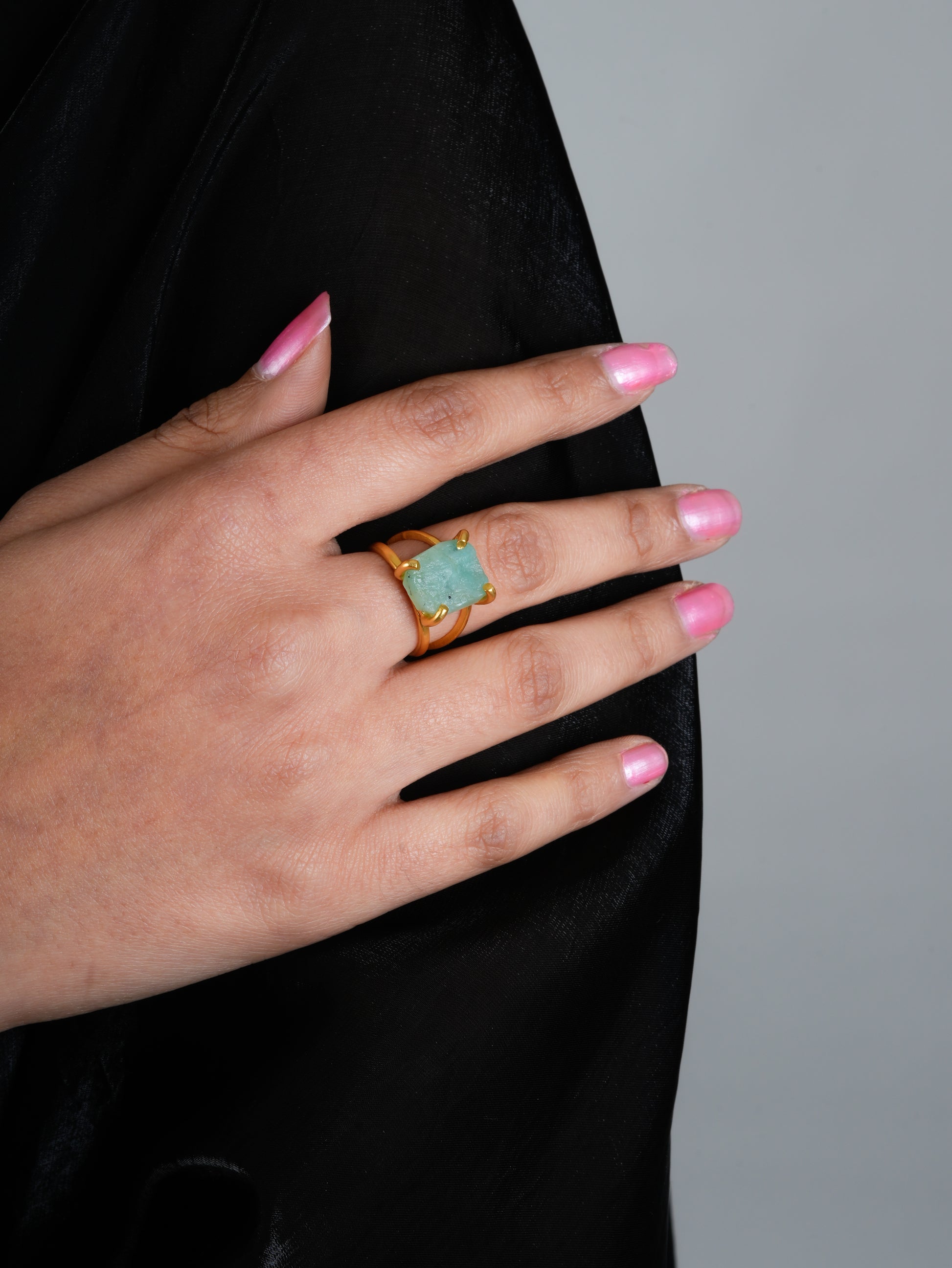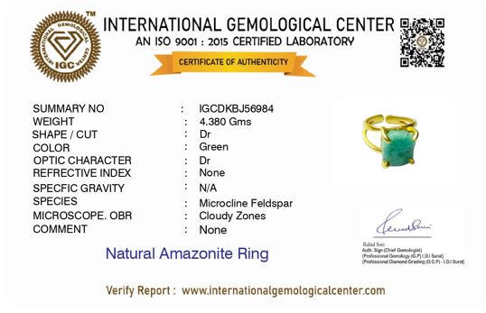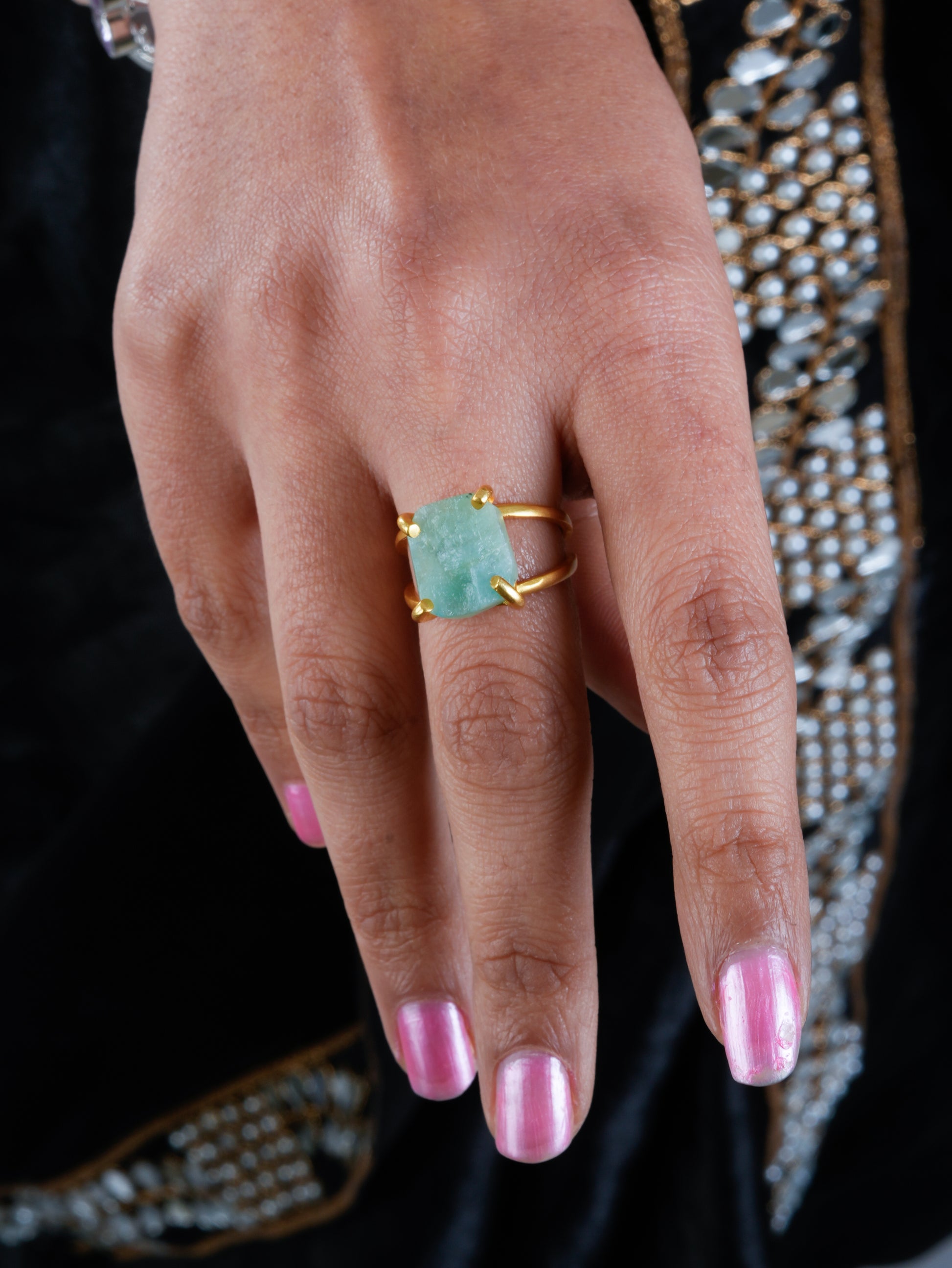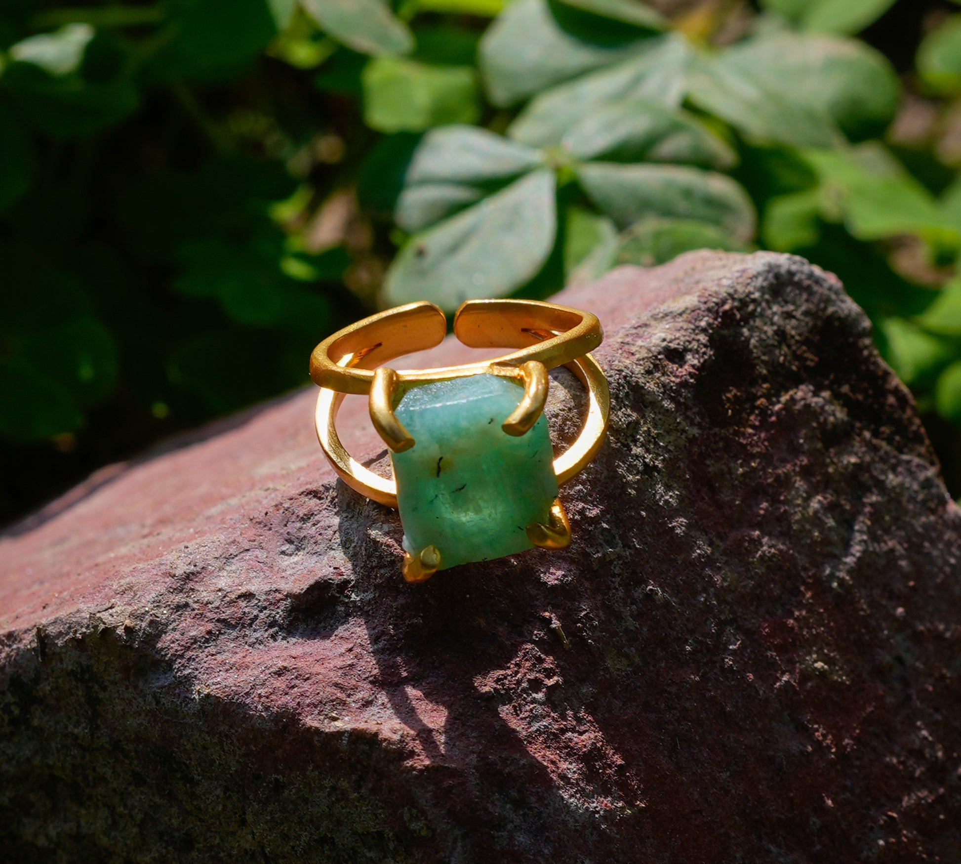 Natural Amazonite Gemstone  studded in gold plated Brass
