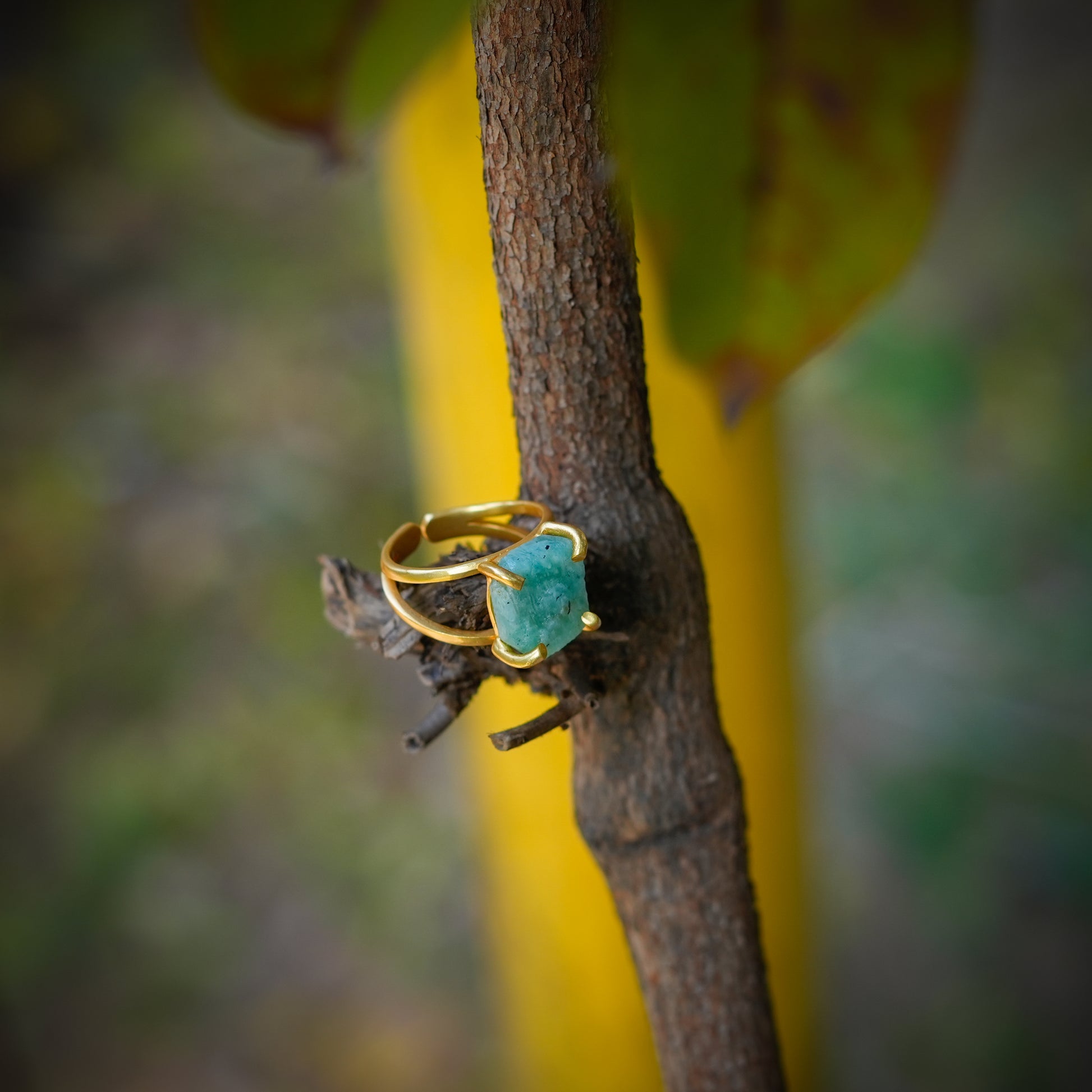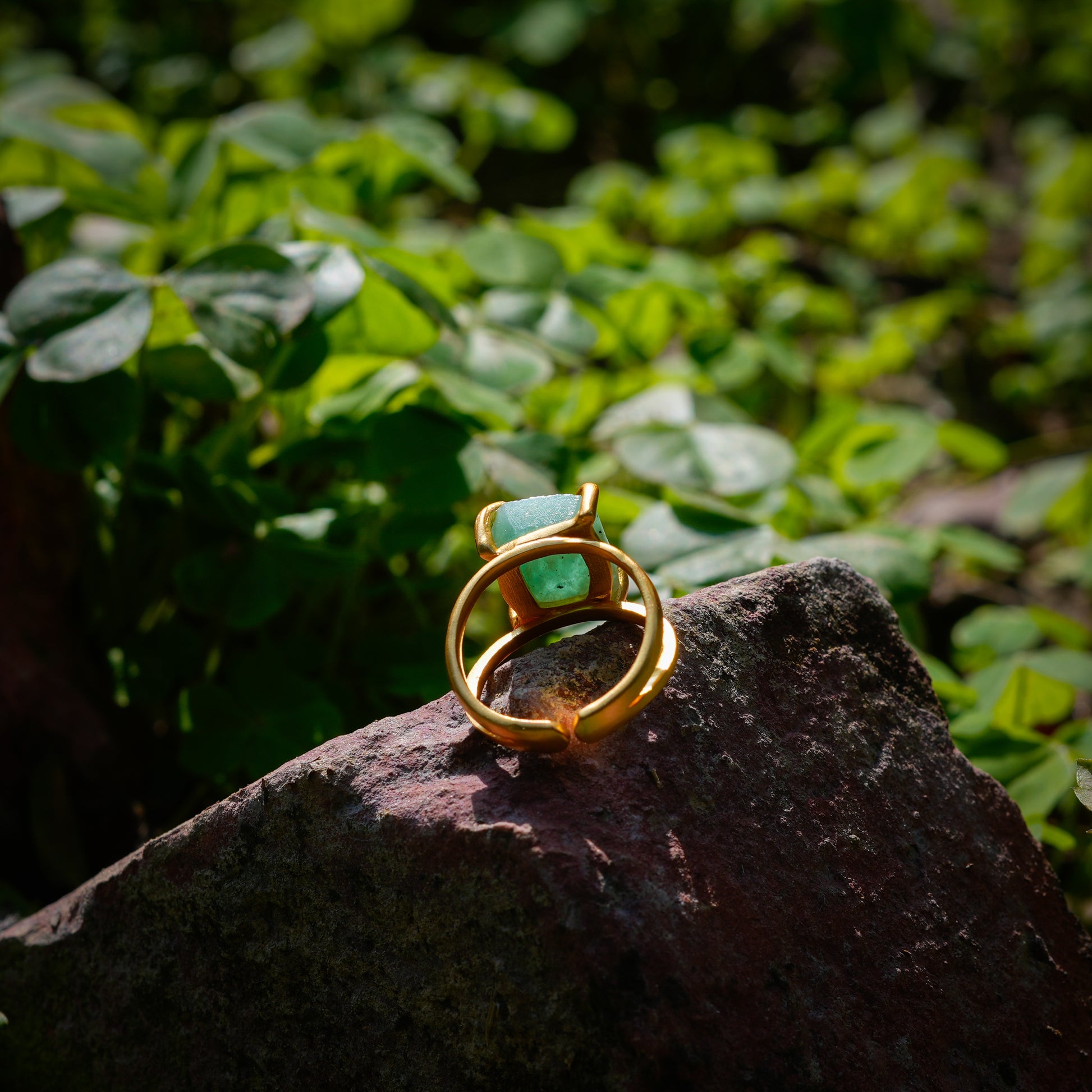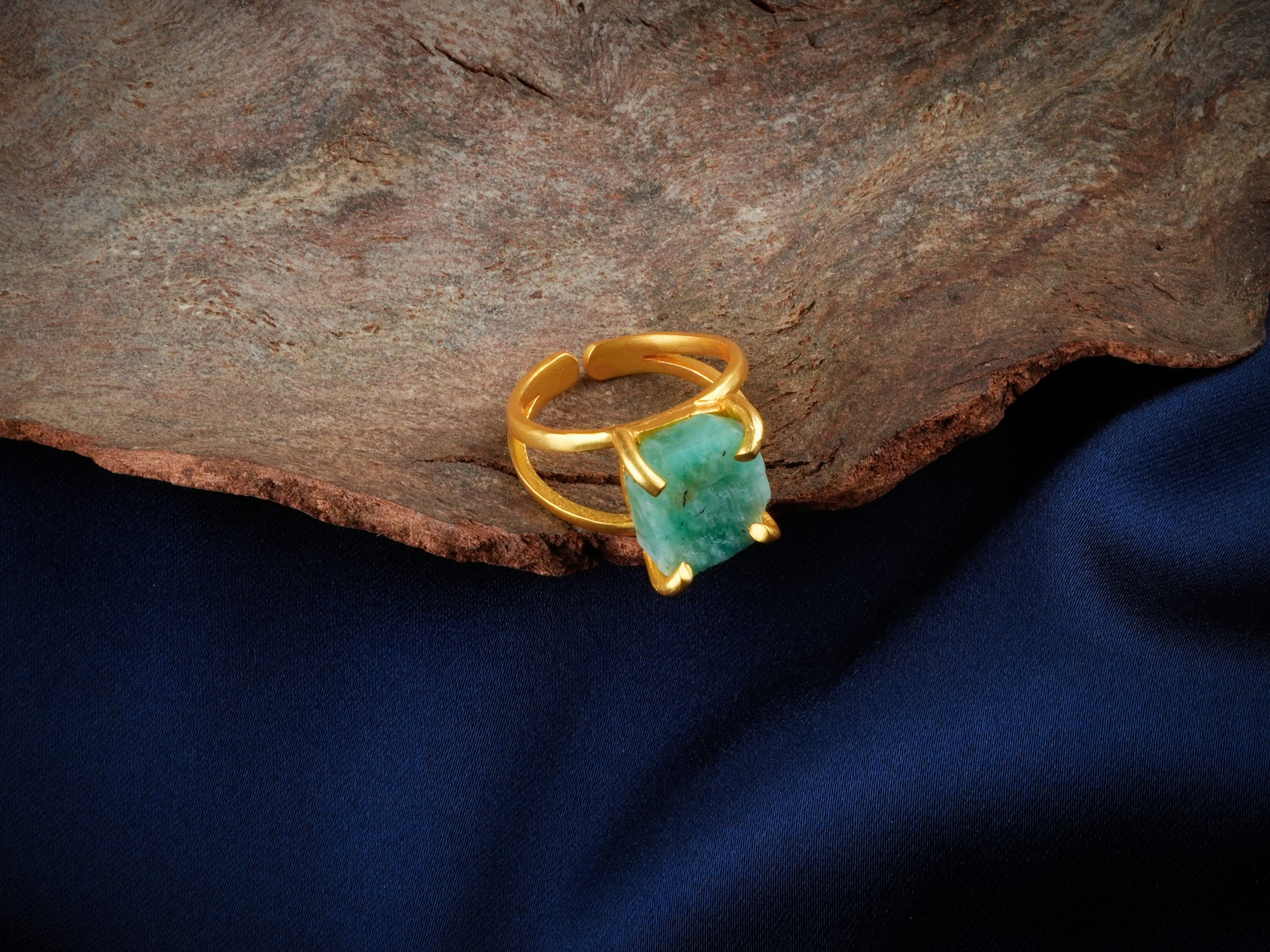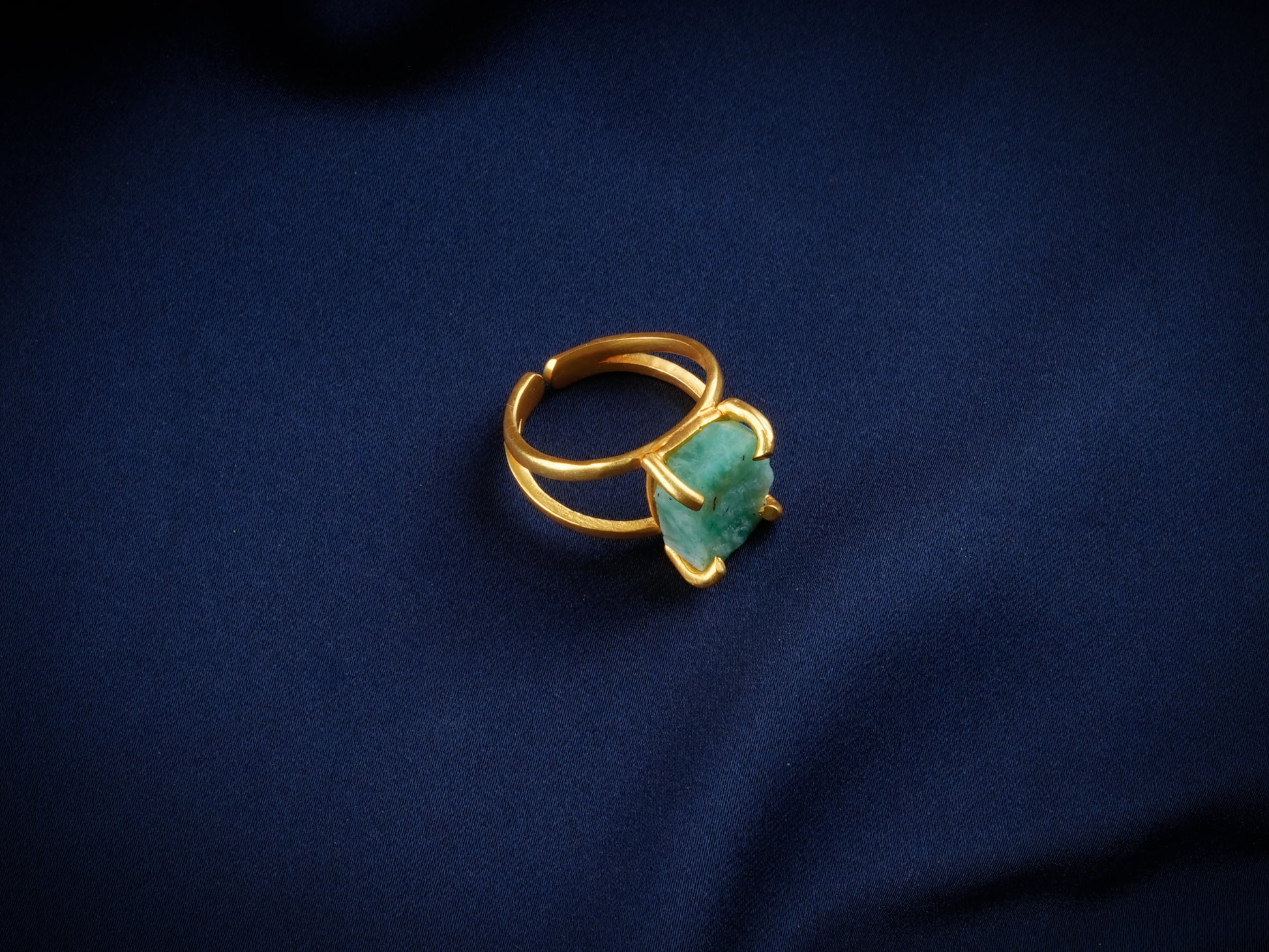 Natural Amazonite Gemstone  studded in gold plated Brass
