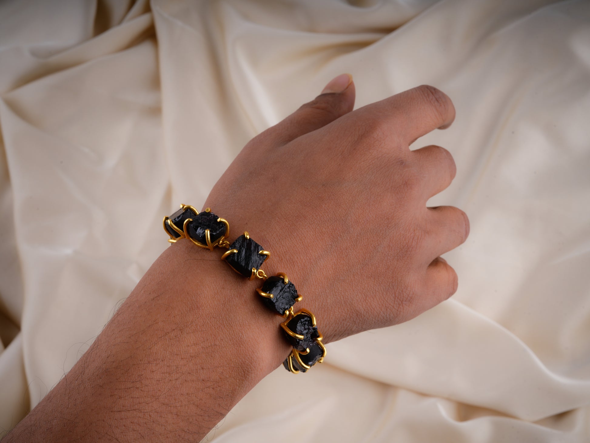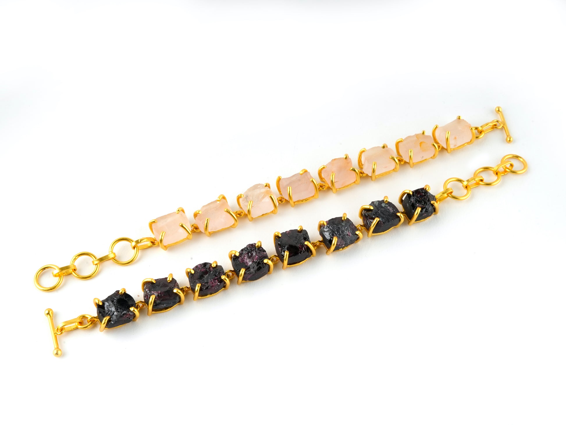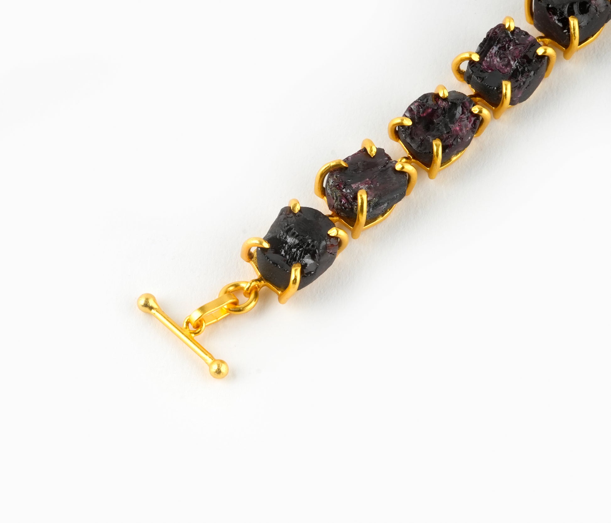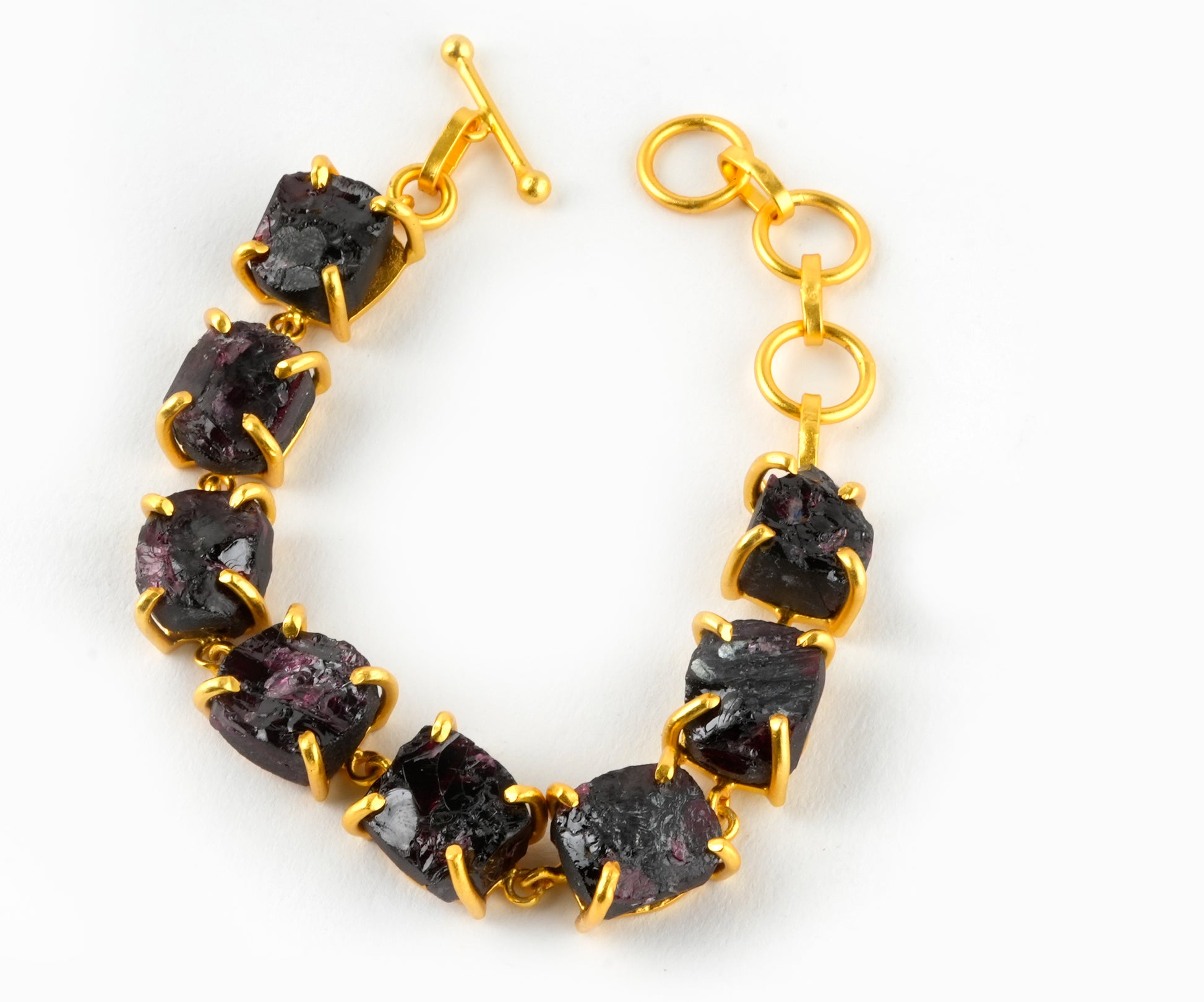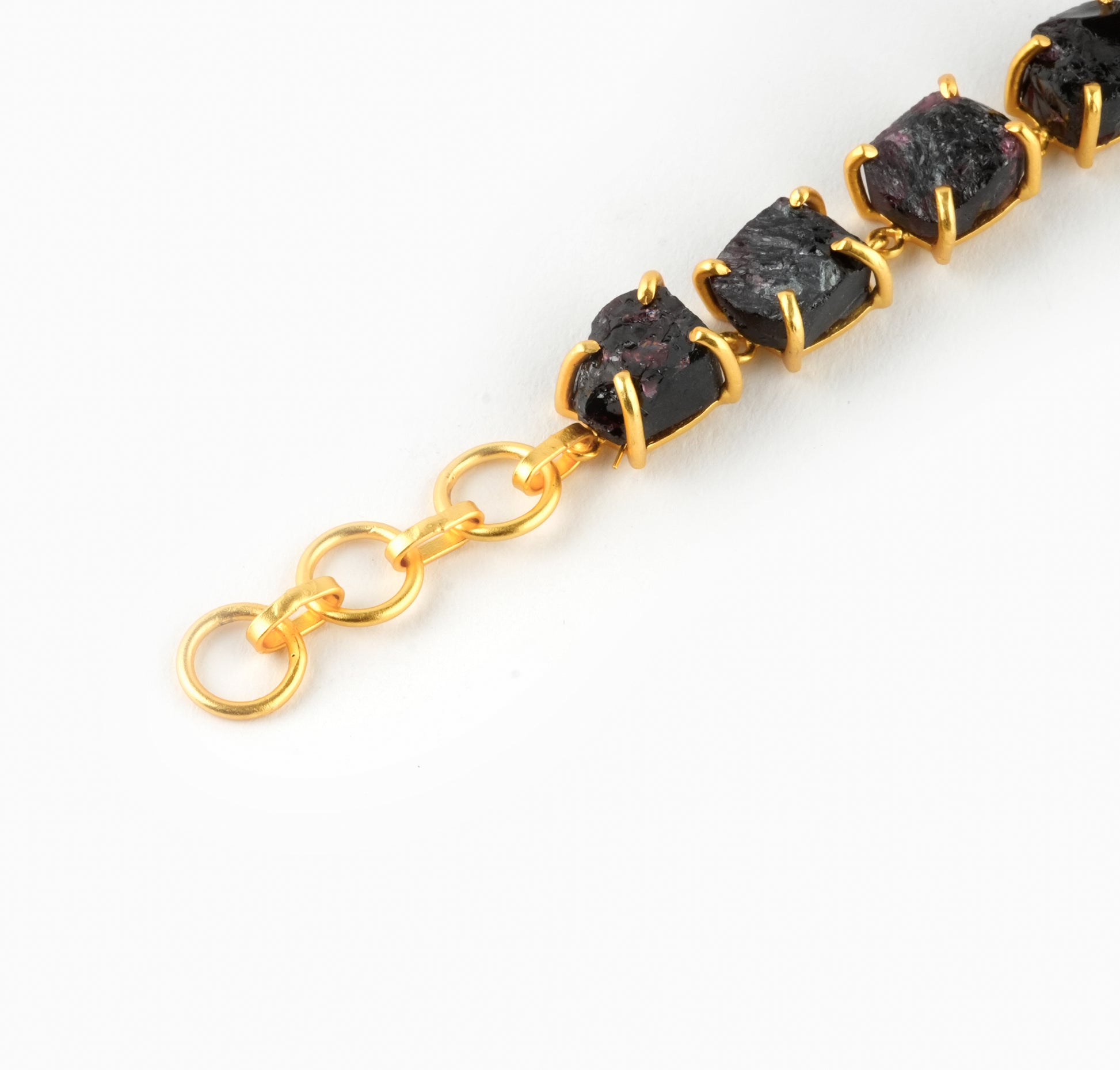 Natural Rough Cut Garnet Stone studded in gold plated brass