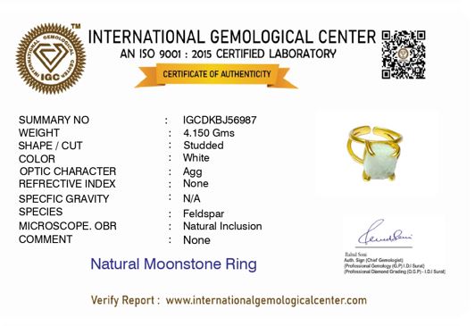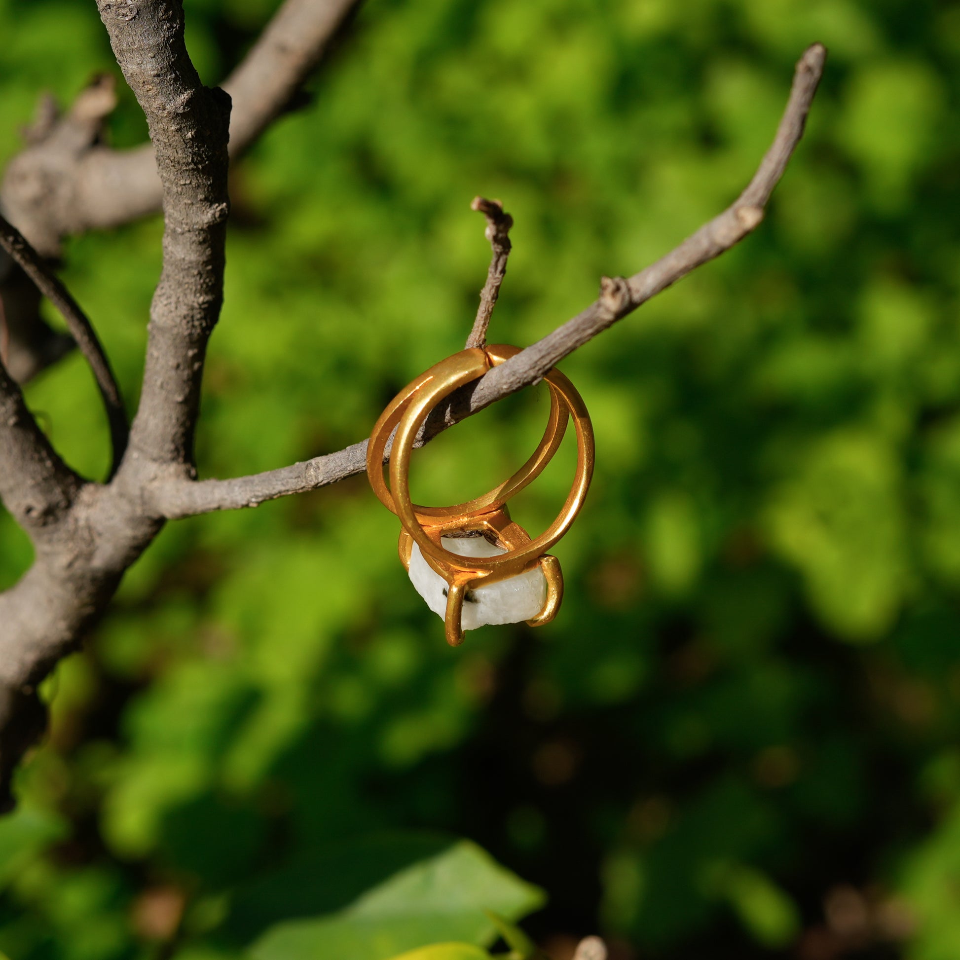 Natural Moon Stone studded in gold plated Brass