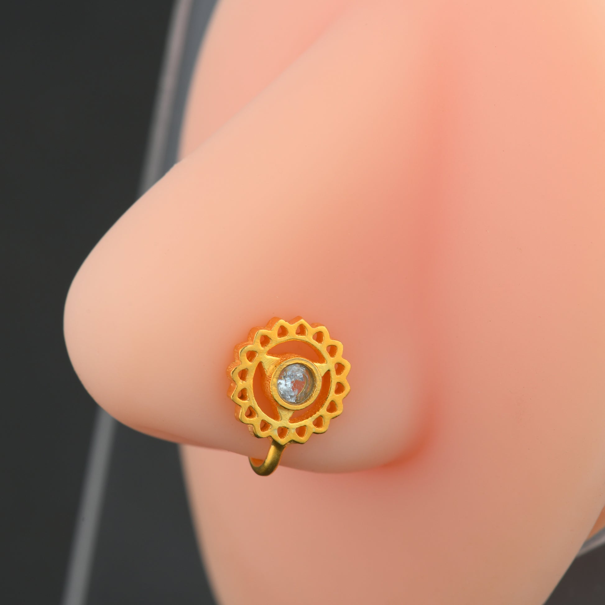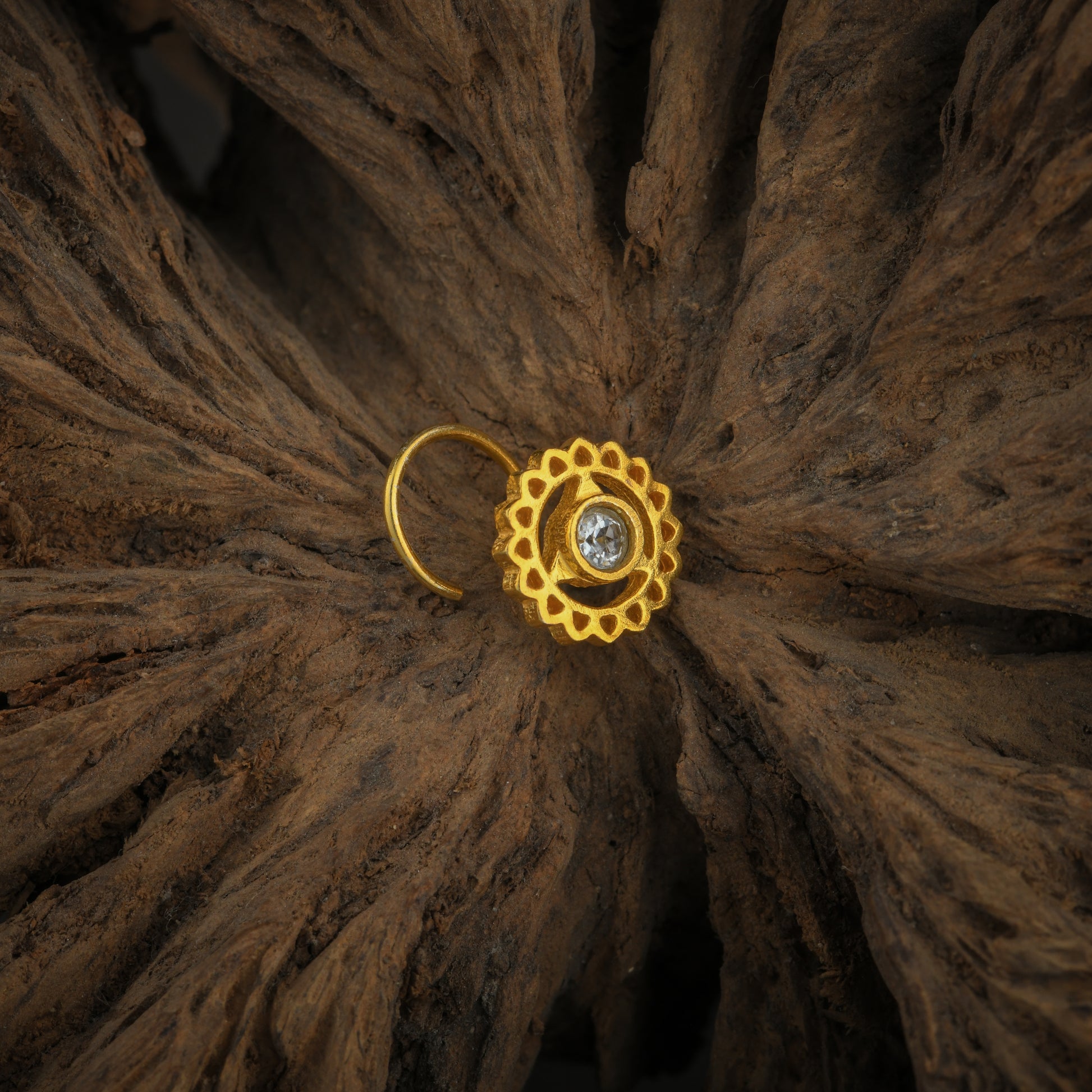 Vishuddhi Chakra Gold Plated Silver Nose Pin