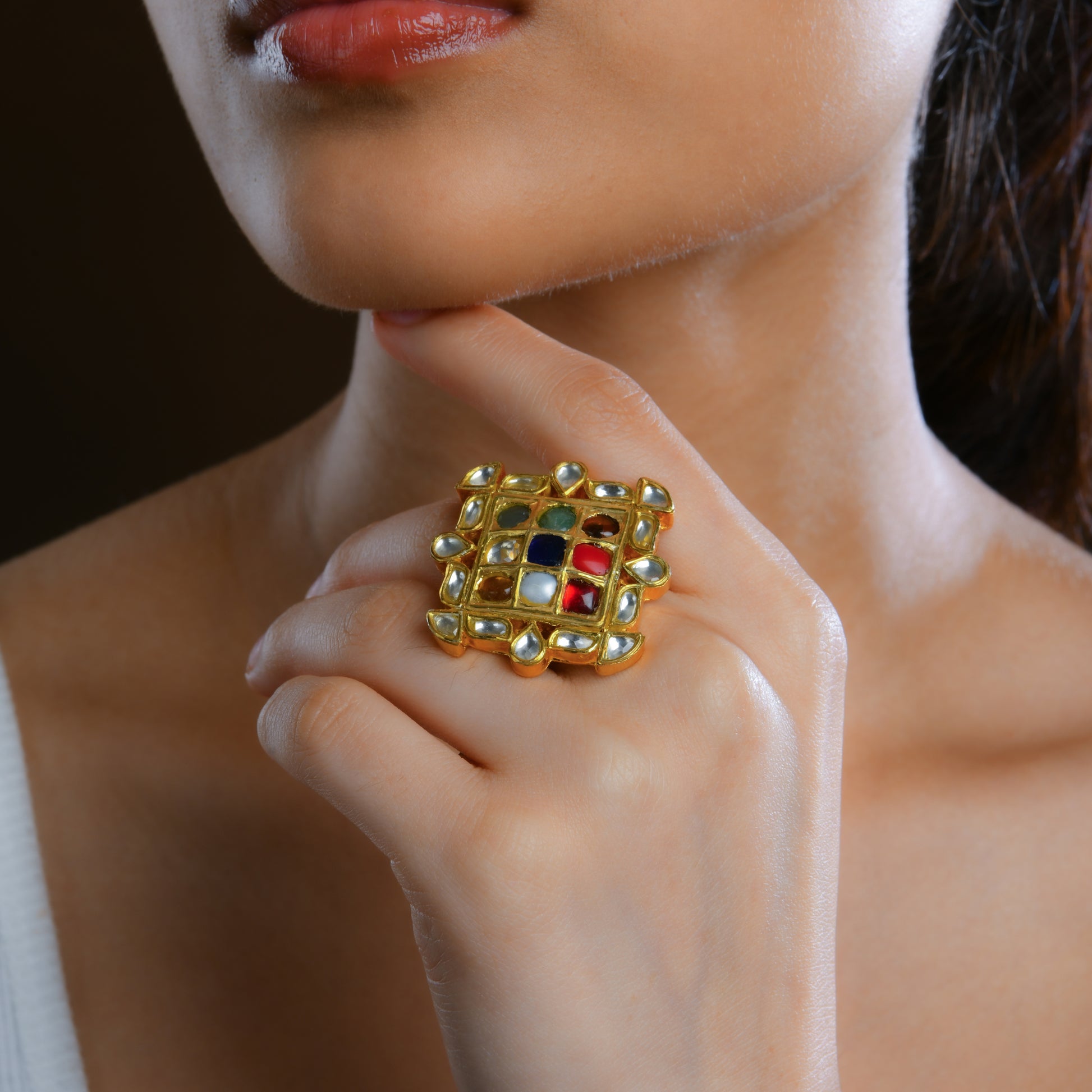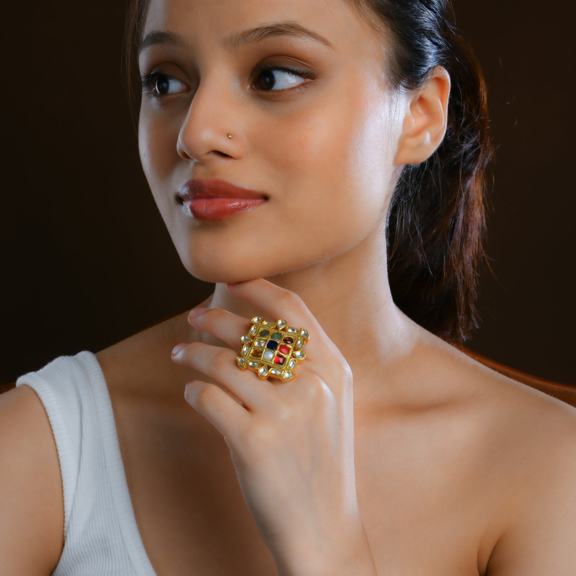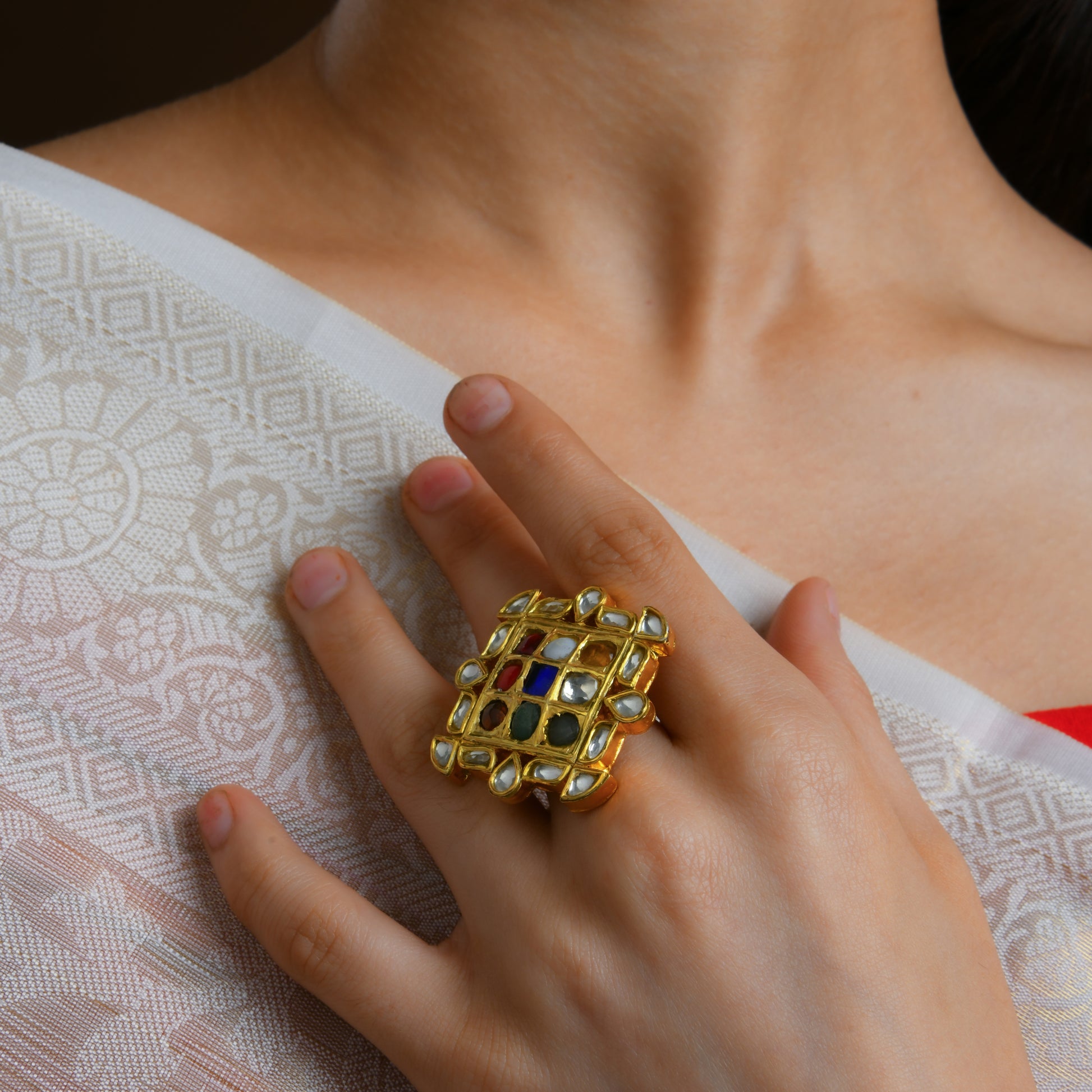 925 Hallmarked Gold Plated Silver, Natural Stones, Kundan